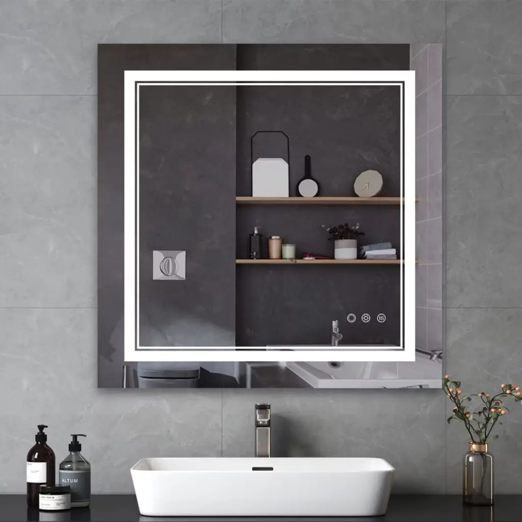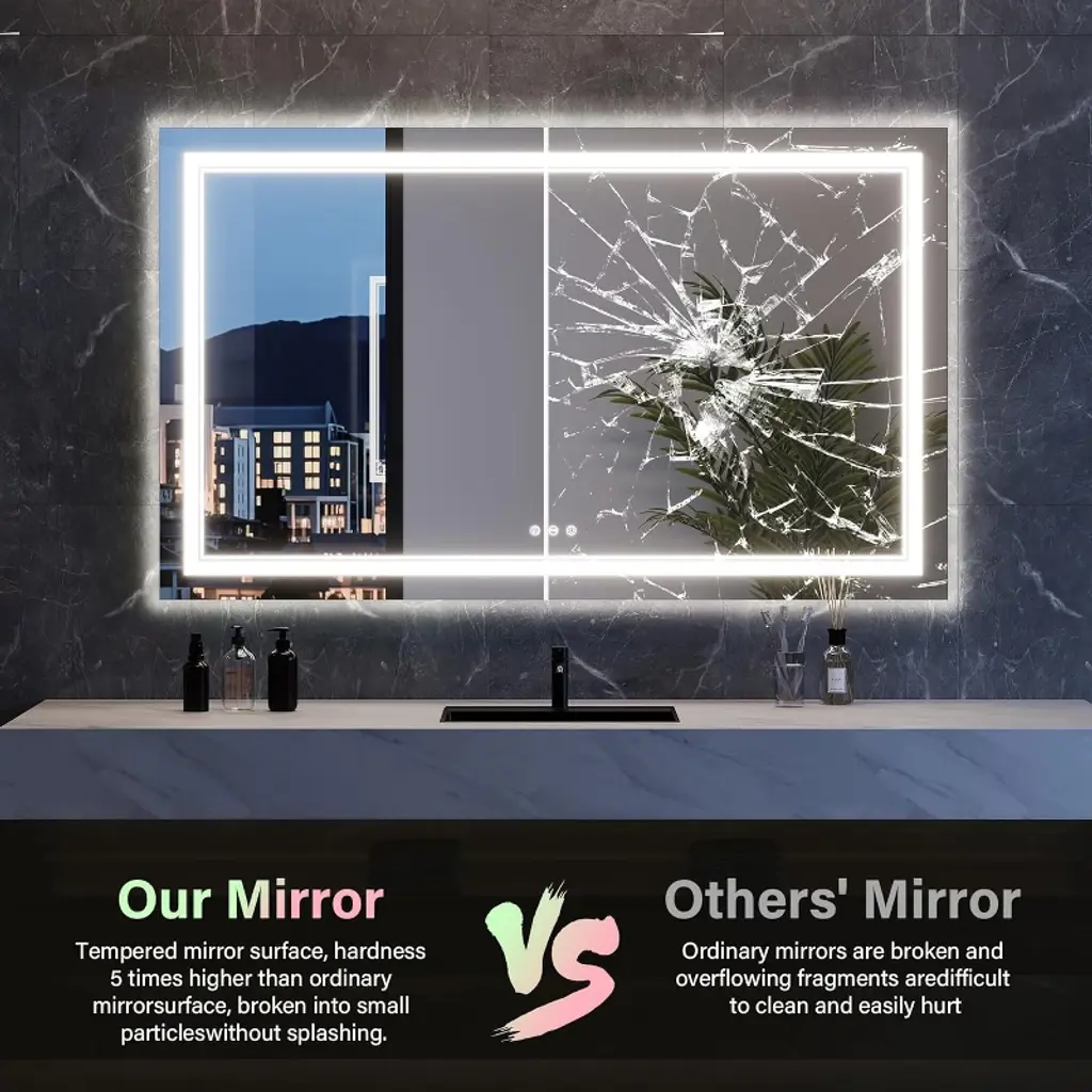 60x36 Led Bathroom Mirror With Rgb Lighting, Front And Backlight, Waterproof, Fog-resistant Tempered Glass, Adjustable Brightness