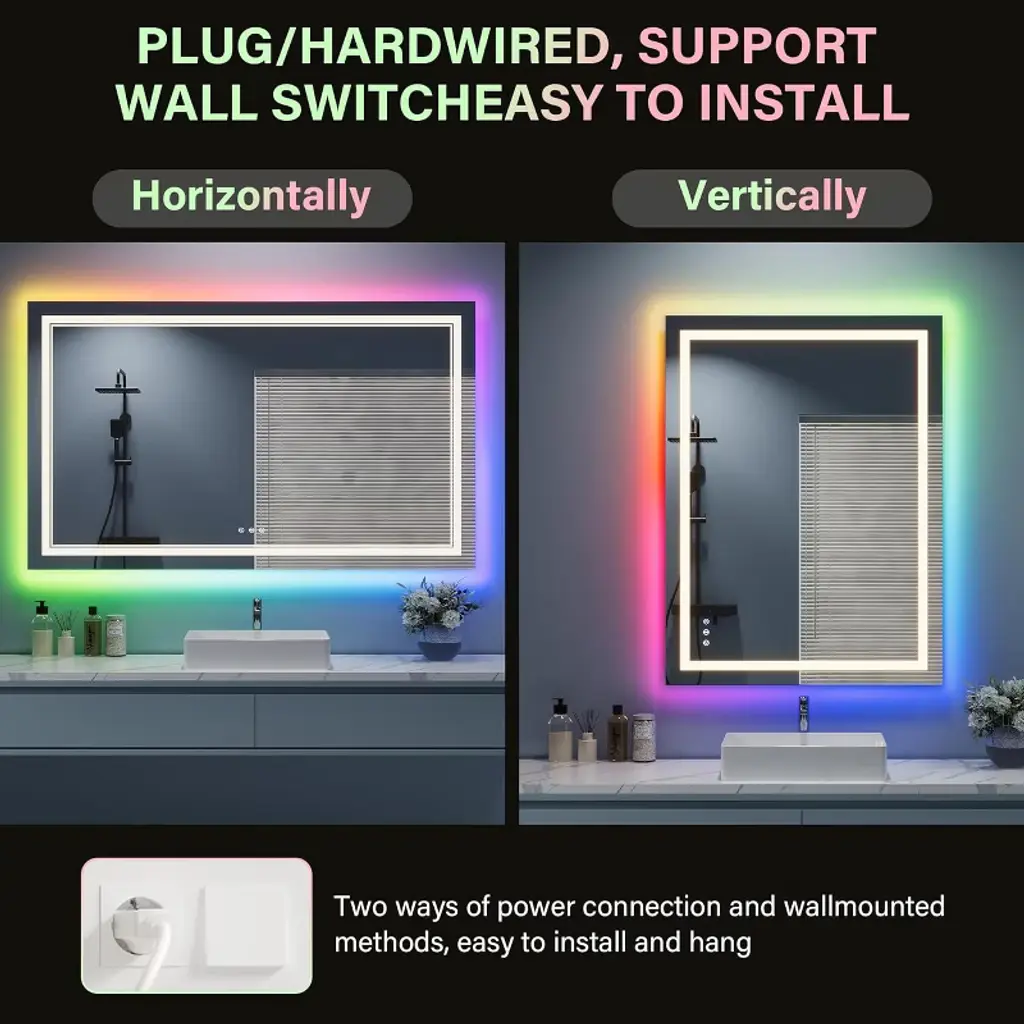 LED Bathroom Mirror with RGB Lighting, Front and Backlight, IP54 Waterproof, Fog-Resistant Tempered Glass, Adjustable Brightness, Modern Vanity Mirror with Lights for Wall, ETL Listed