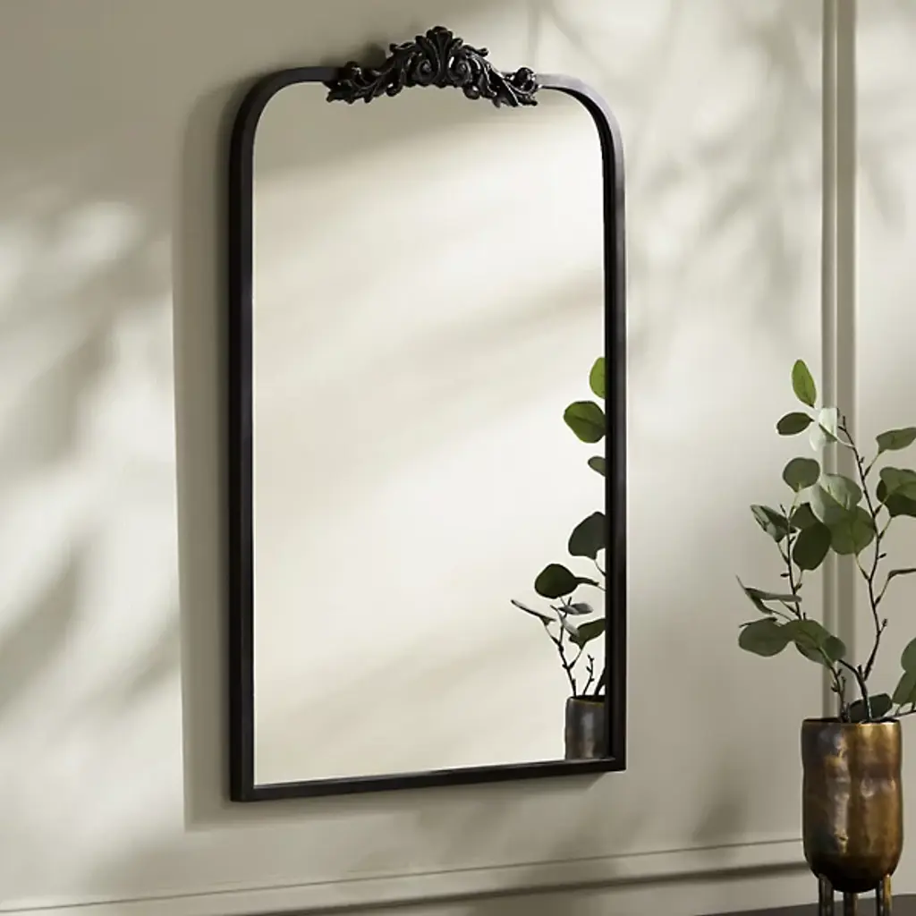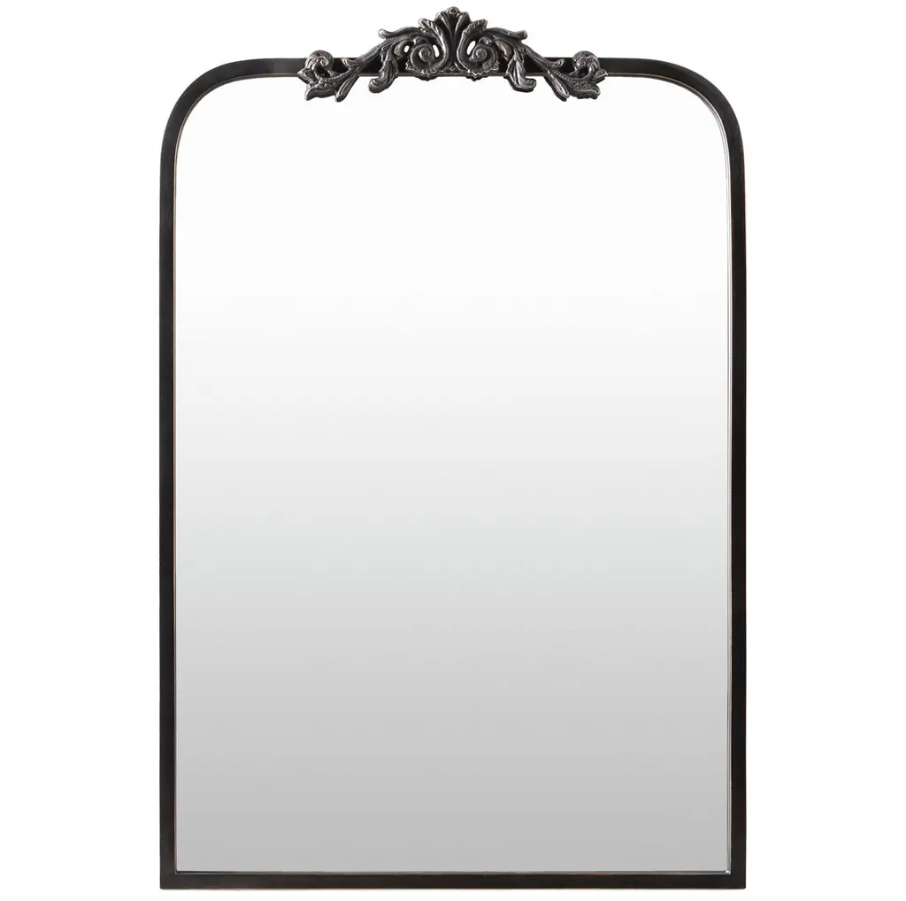 Transform your interiors with the artistic lines of the Aarlen Accent Mirror from Surya. It features a graceful, arching silhouette that enhances its surroundings, contrasting curving upper edges with angular lower corners. Its slim frame is made from sturdy iron and adorned with intricate central scrollwork, adding an elegant bit of sophistication. Able to add luxury to a bathroom or boudoir, this mirror brings rustic charm and refined character to become the central accent of any room.