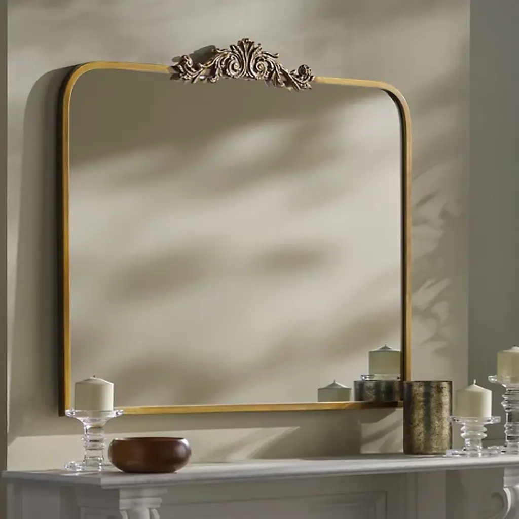 Add complexity to your interiors with the Aarlen Mantel Mirror from Surya. As its name implies, it features a stunning arching shape that perfectly complements any mantel. The frame is fashioned from durable iron, while exquisite central scrollwork adds welcome sophistication to the curving, slender frame. It is certain to add charm and character to any flat surface it is positioned on.