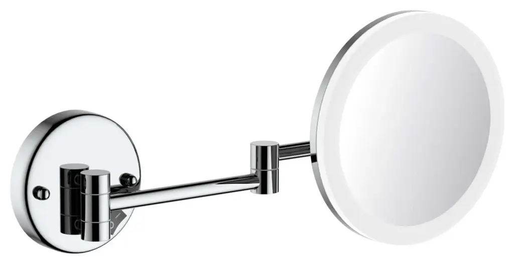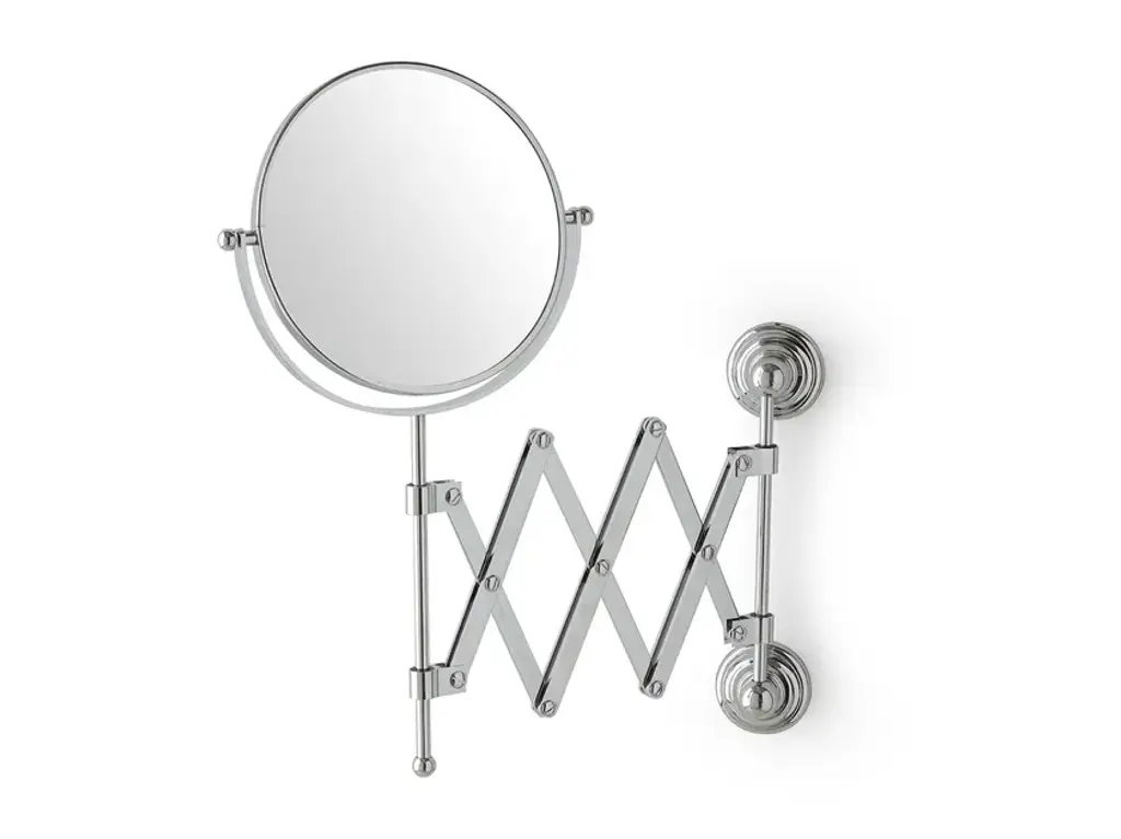Wall mounted double mirror (normal + magnifying) chrome.Classic style tilting mirrors of various shapes (oval, square or folding). Large choice of metal finishing (chrome, nickel, copper, gold, bronze,…) matt or glossy. Small and large sizes with or without frame. Backlit led available.