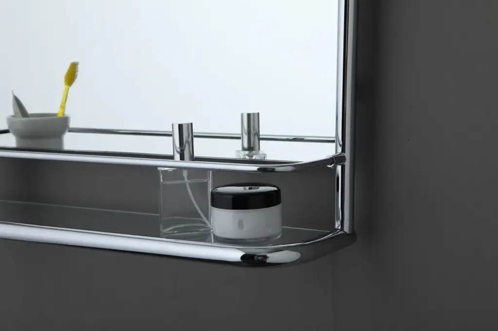 Mirror + shelf.Classic style tilting mirrors of various shapes (oval, square or folding). Large choice of metal finishing (chrome, nickel, copper, gold, bronze,…) matt or glossy. Small and large sizes with or without frame. Backlit led available.