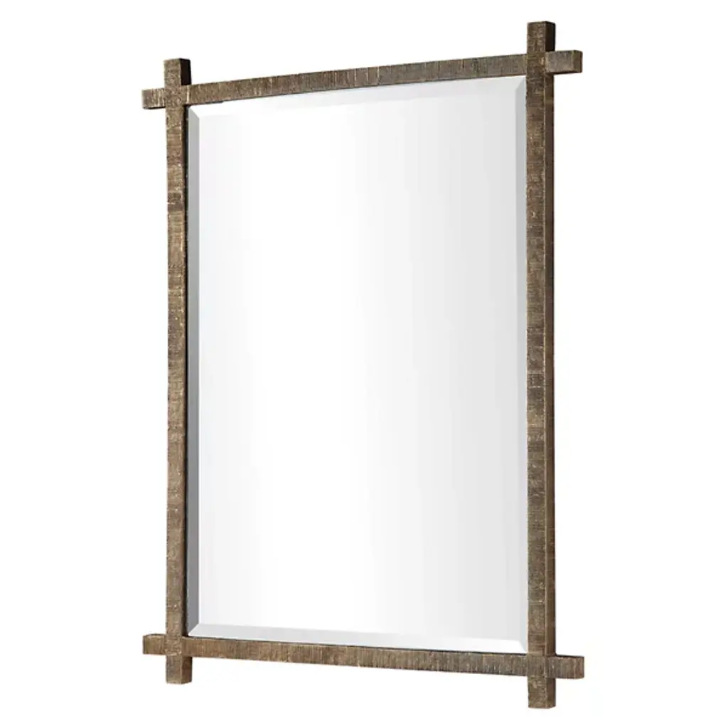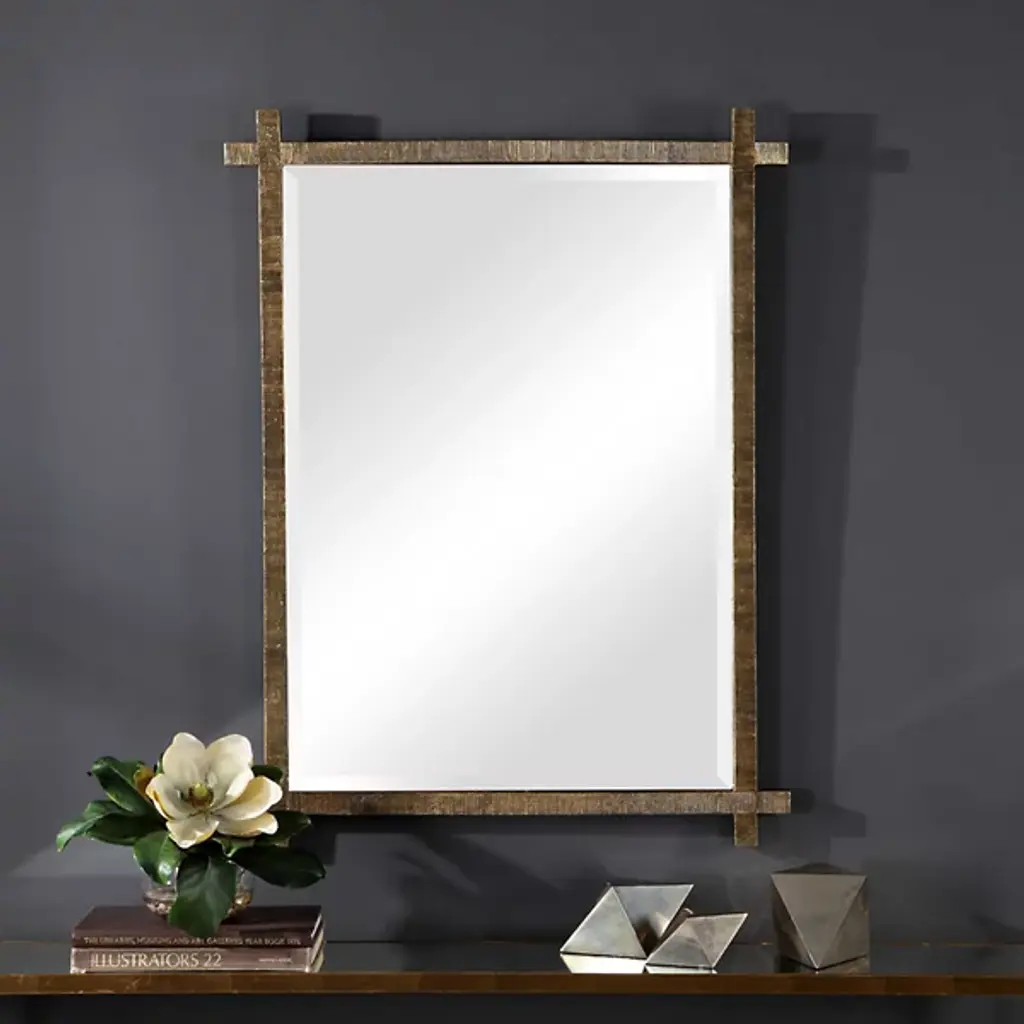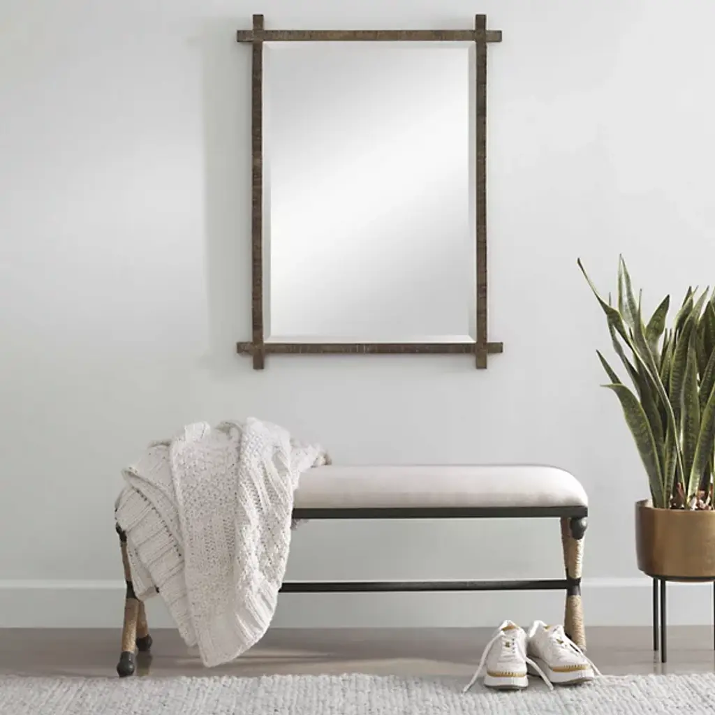 The Abanu Vanity Mirror from Uttermost represents John Kowalski's interpretation of global design motifs. The frame's ribbed surface treatment creates repetitive patterns that catch and reflect light in different directions. A substantial beveled edge adds depth to the reflection, while the resin and MDF construction ensures durability. The mirror accommodates both horizontal and vertical mounting positions, offering flexibility in placement and design arrangements.