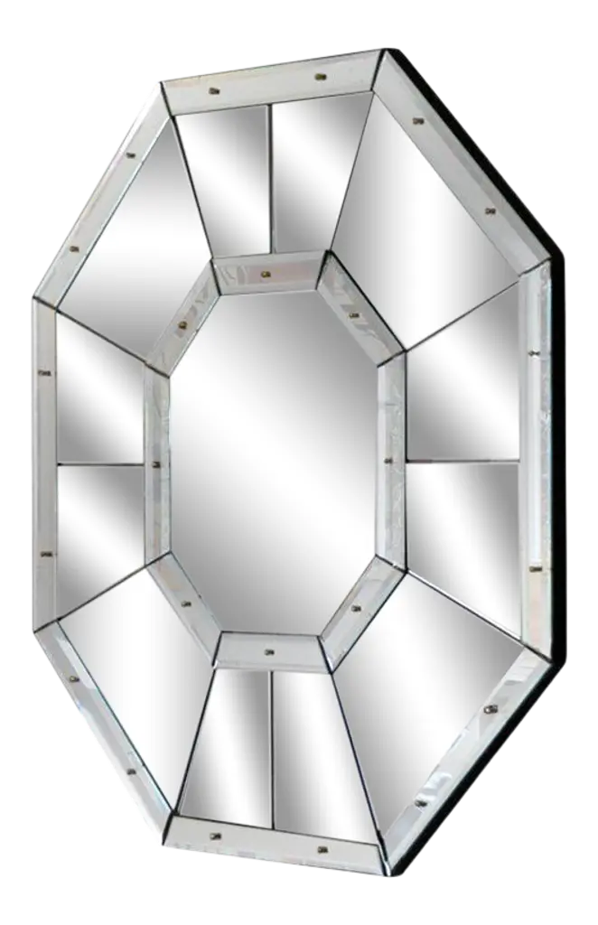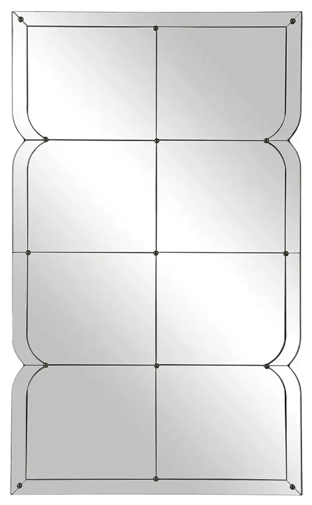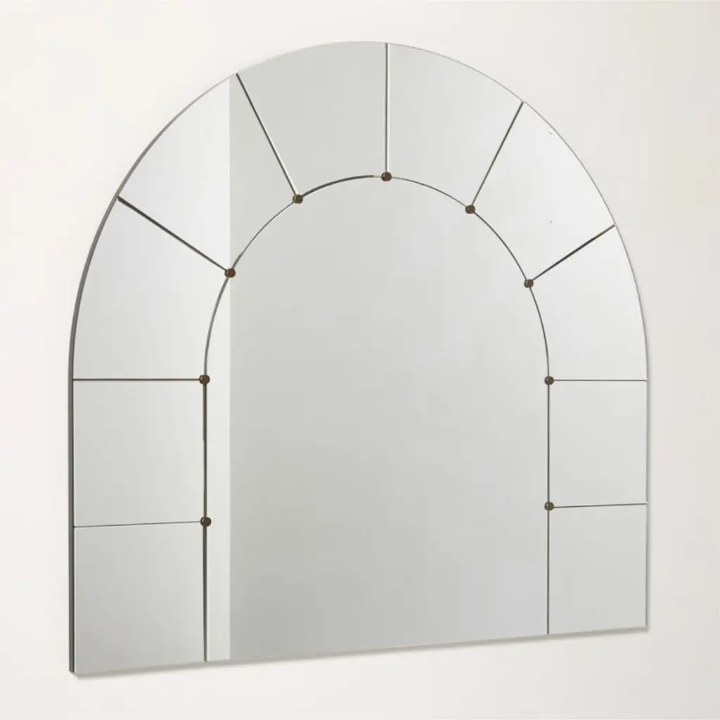 Carved and finished by hand, mantel mirror by Ceci Thompson has the look of a vintage treasure. Artisans bevel and set individual glass pieces in an architecturally inspired arch, punctuating the piece with button detailing reminiscent of found pennies. CB2 exclusive.
