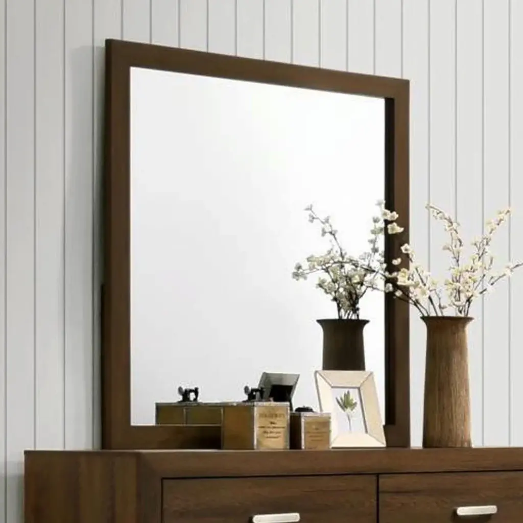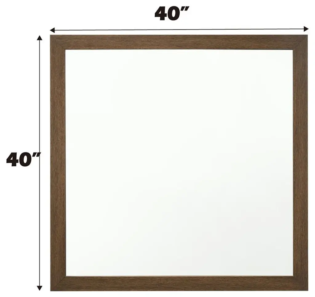 The Miquell Mirror provides a commanding presence in any bedroom. This contemporary Mirror features a simple, square wooden frame in an oak finish. All expertly crafted with a transitional look that is an ideal addition to any bedroom. This fashionable mirror will fuse with the surrounding decor and accent your other bedroom furniture, transforming a room from ordinary into something interesting and sophisticated.Features:• Finish: Oak Finish• Material: Wood, Veneer, Composite Wood• Mirror (NO Beveled Edge)• Shape: Square• Orientation: Horizontal (Landscape)Dimensions:• Product Dimensions: 40"L X 2"W X 40"H• Net Weight: 33 lbs• Package Dimensions: 43.38"L X 43"W X 2.38"H• Gross Weight: 31 lbs• Package Type: ISTA-3A• Ship Type: GROUND - OVERSIZE