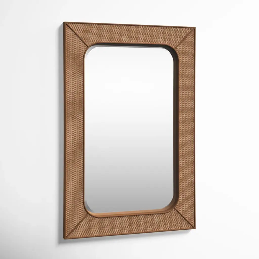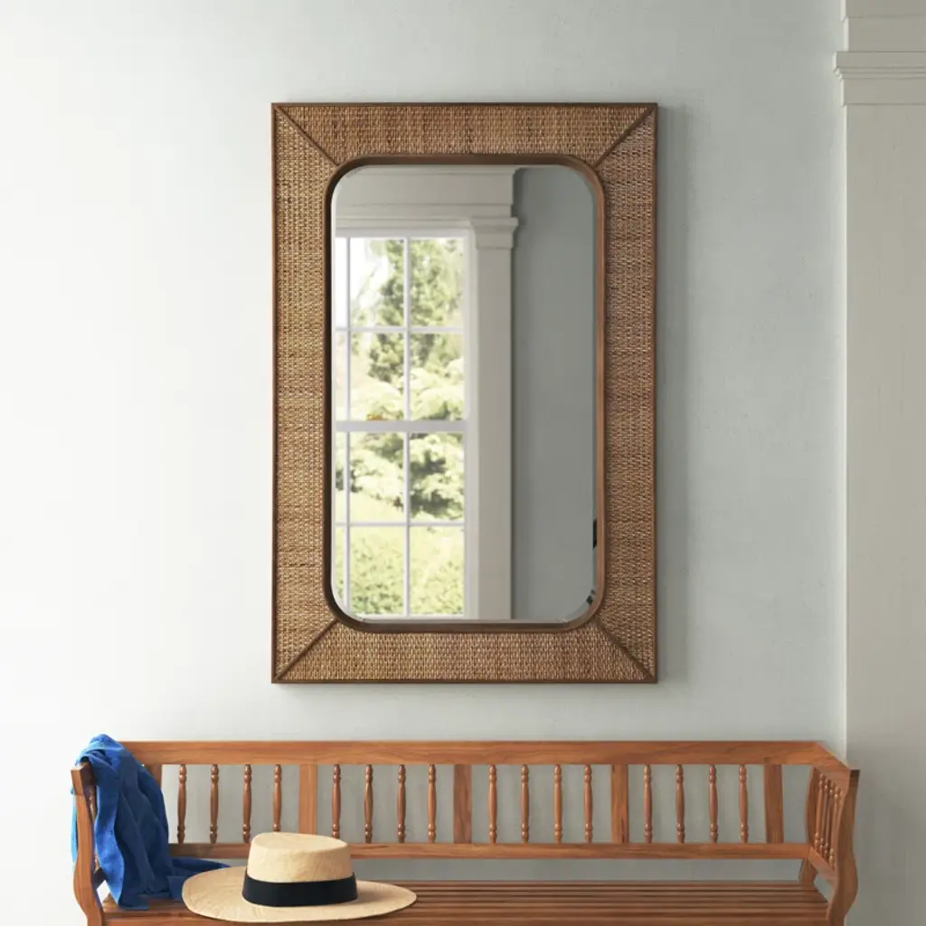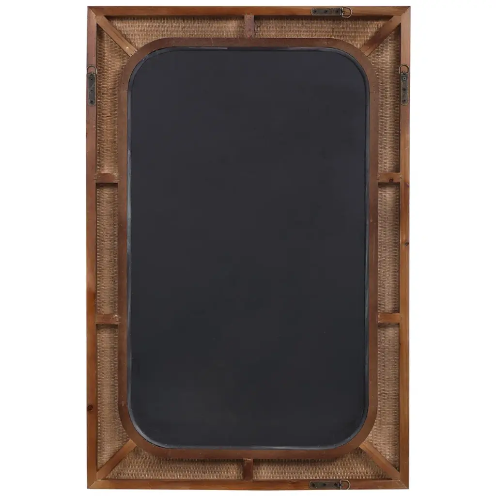 Showcasing elegant lines and a timeless style, this mirror features a woven rattan frame paired with fir wood accents, finished in a warm maple stain. May be hung horizontal or vertical.