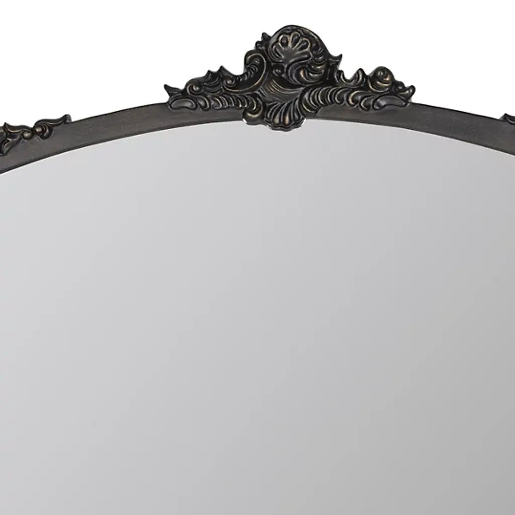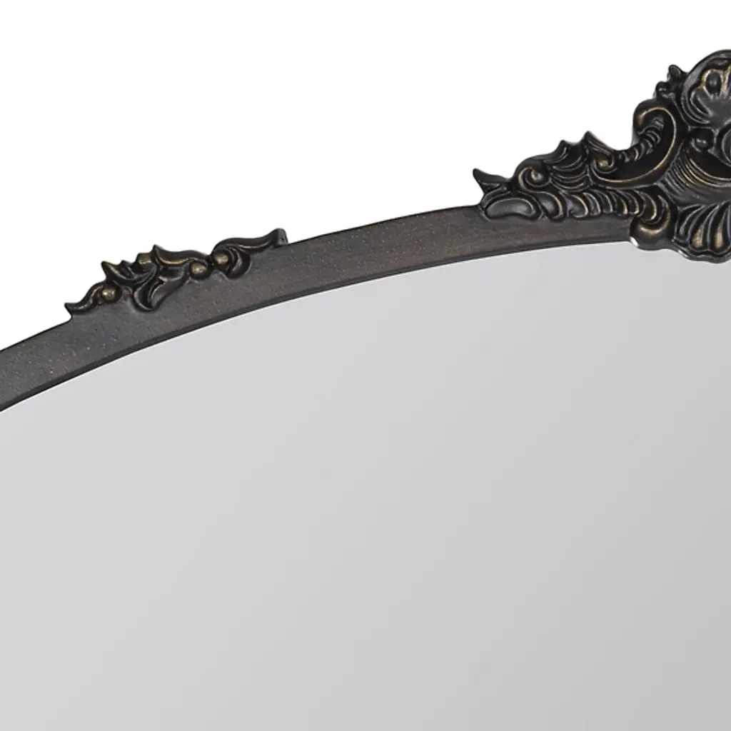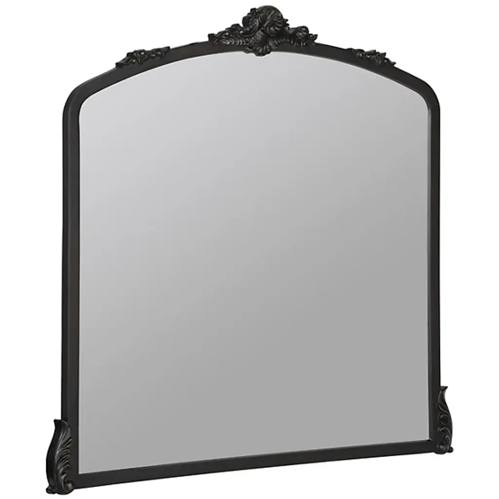The Adeline Ornate Mantle Mirror from Cooper Classics showcases elaborate scrollwork across its upper crown. Metal and polyurethane construction enables intricate detailing in the baroque-inspired carvings. The arched frame rises to a central medallion while matching ornamental pieces anchor the base corners. The design draws from French decorative traditions while maintaining proper proportions for modern interiors.