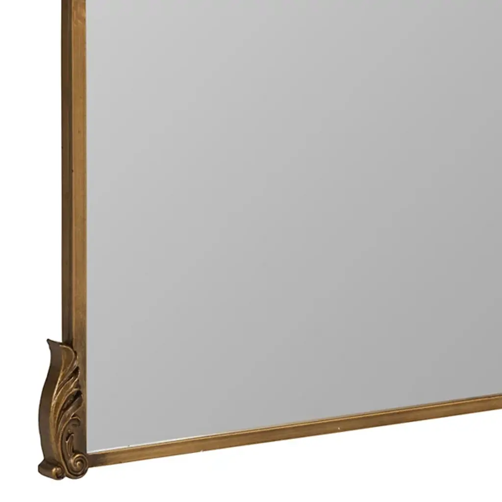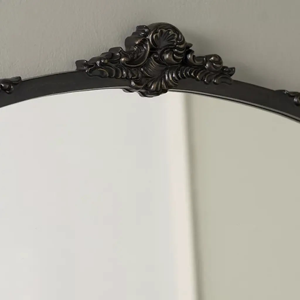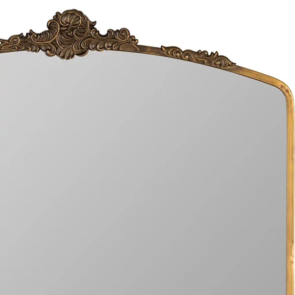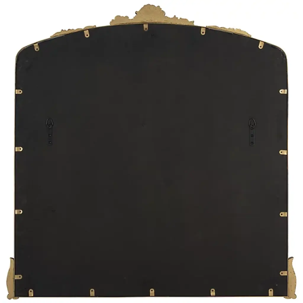 The Adeline Ornate Mantle Mirror from Cooper Classics showcases elaborate scrollwork across its upper crown. Metal and polyurethane construction enables intricate detailing in the baroque-inspired carvings. The arched frame rises to a central medallion while matching ornamental pieces anchor the base corners. The design draws from French decorative traditions while maintaining proper proportions for modern interiors.