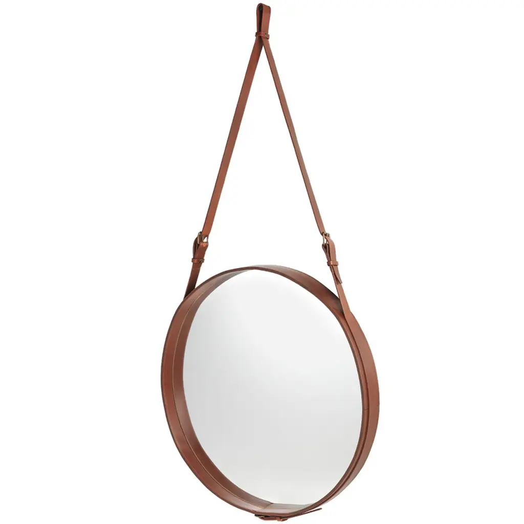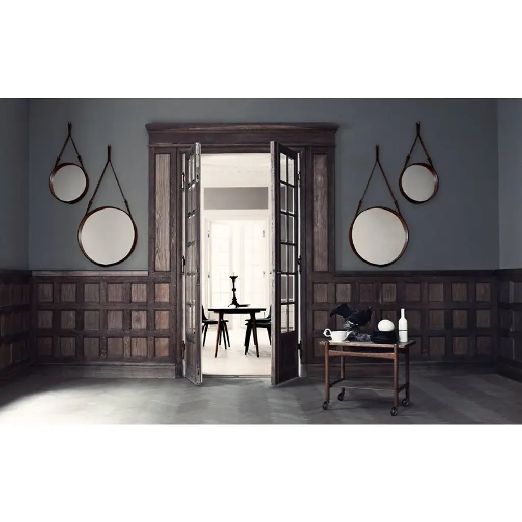 GUBI's Adnet is an elegant wall mirror made of the most refined materials: the best Italian leather and luxurious brass. In the 1950s, designer Jacques Adnet formed a partnership with the beloved French fashion house, Hermès, and designed a range of leather-covered furniture and interior accessories for them. The Adnet mirror was inspired by these very products. Adnet was one of the first designers to combine metal, glass and leather in furniture.