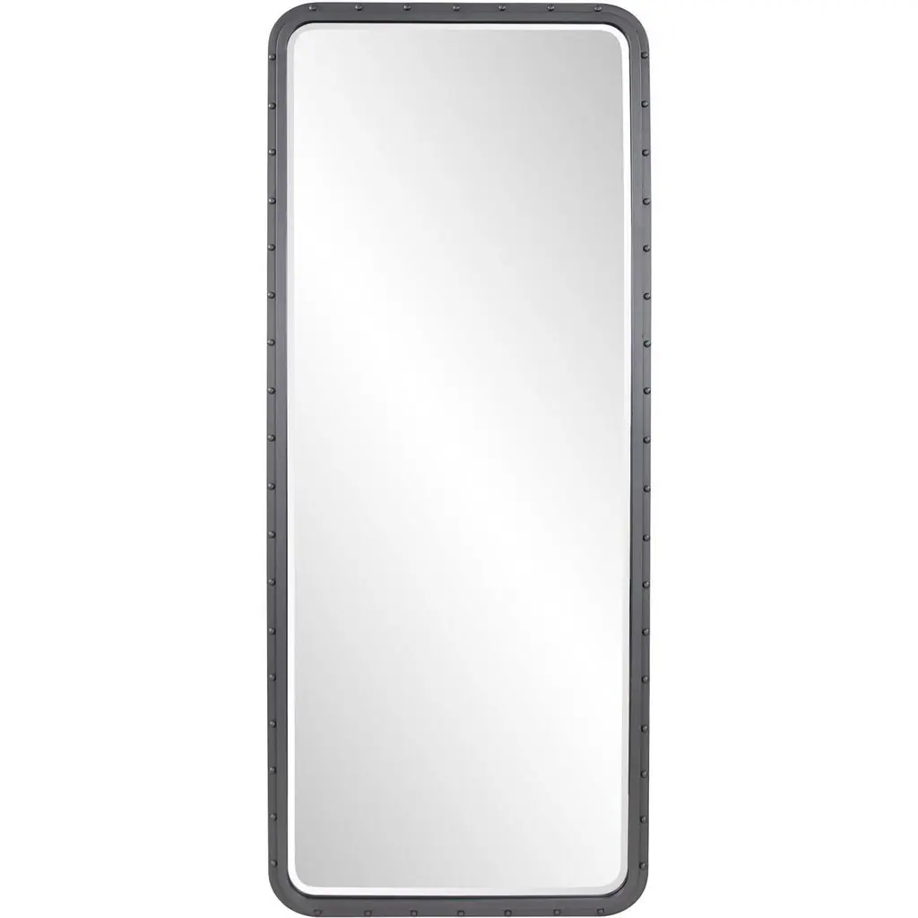Adnet Mirror, Rectangular, 65 X 115 Cm, Black Leather