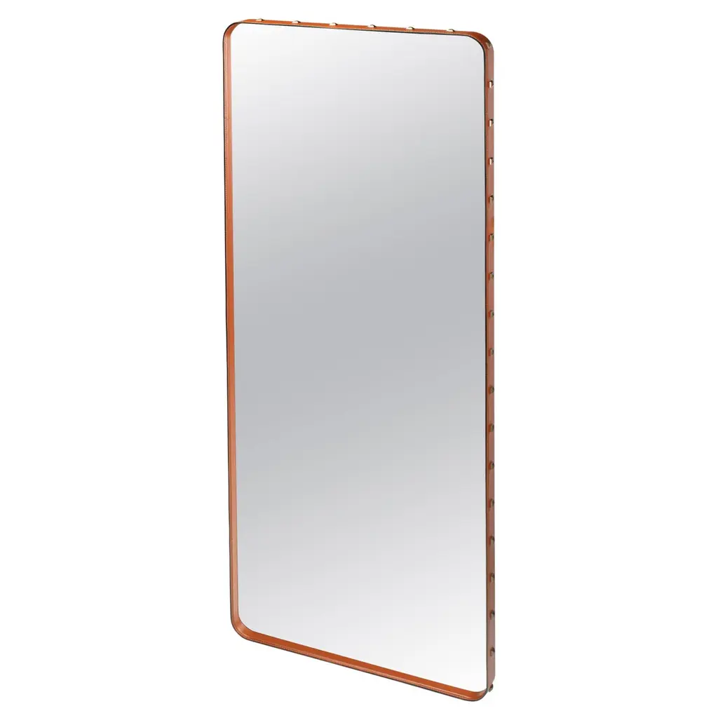 GUBI's Adnet is an elegant wall mirror made of the most refined materials: the best Italian leather and luxurious brass. In the 1950s, designer Jacques Adnet formed a partnership with the beloved French fashion house, Hermès, and designed a range of leather-covered furniture and interior accessories for them. The Adnet mirror was inspired by these very products. Adnet was one of the first designers to combine metal, glass and leather in furniture.