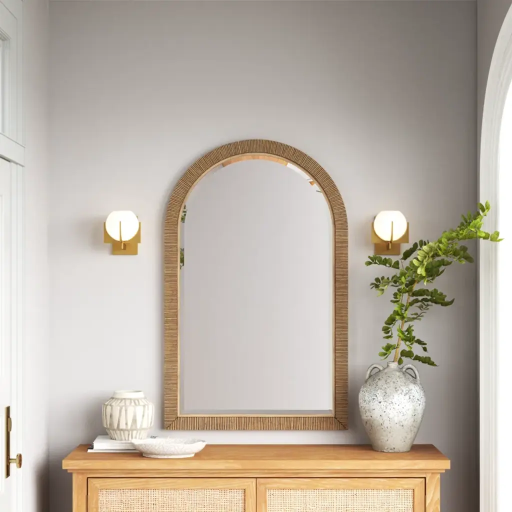 Adrianne Solid Wood / Rattan Flat Wall Mirror