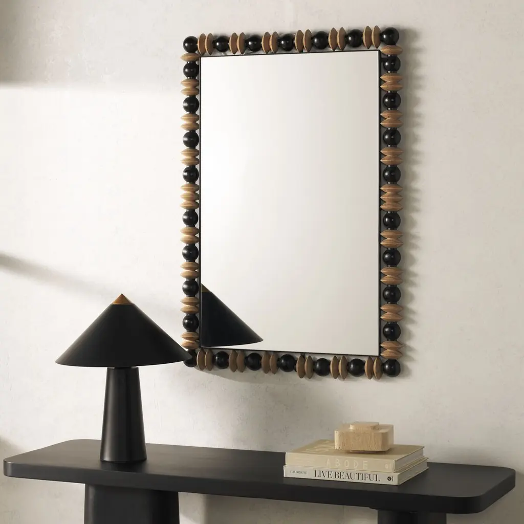 Introducing the Aelia mirror, a harmonious blend of nature-inspired aesthetics with a contemporary twist. This striking piece is crafted using a combination of materials, featuring a design that creates an eye-catching contrast. The organic shapes of the elements around the mirror bring a touch of the outdoors into your living space, while the versatile design ensures it can complement various interior styles. This stylish mirror not only serves as a functional piece for reflection but also acts as an alluring wall decor, effortlessly elevating the sophistication of any room it adorns. With its well-balanced design, the Aelia mirror merges practicality with aesthetic appeal, making it a delightful selection for those who appreciate natural elements fused with modernity in their decor.