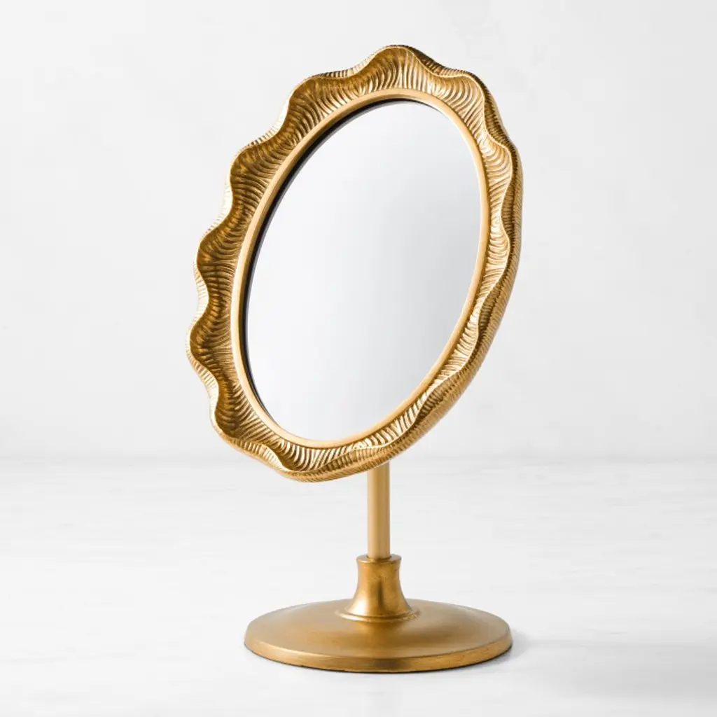 Add rococo-inspired elegance to the vanity or dresser. Designed in collaboration with style icon Aerin Lauder, this gilded oval mirror provides gleaming glamour for your pre-party primping routine. It pivots smoothly to offer the perfect angle for applying makeup or trying on jewelry.