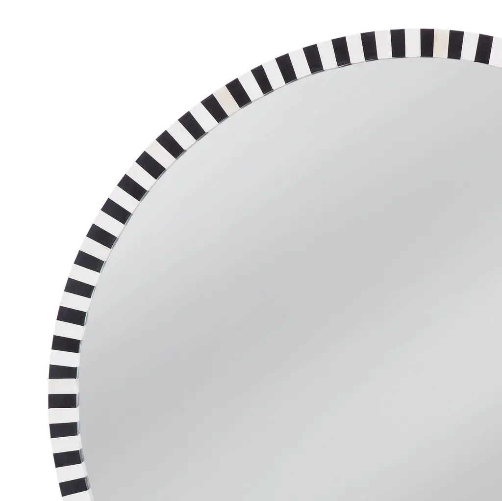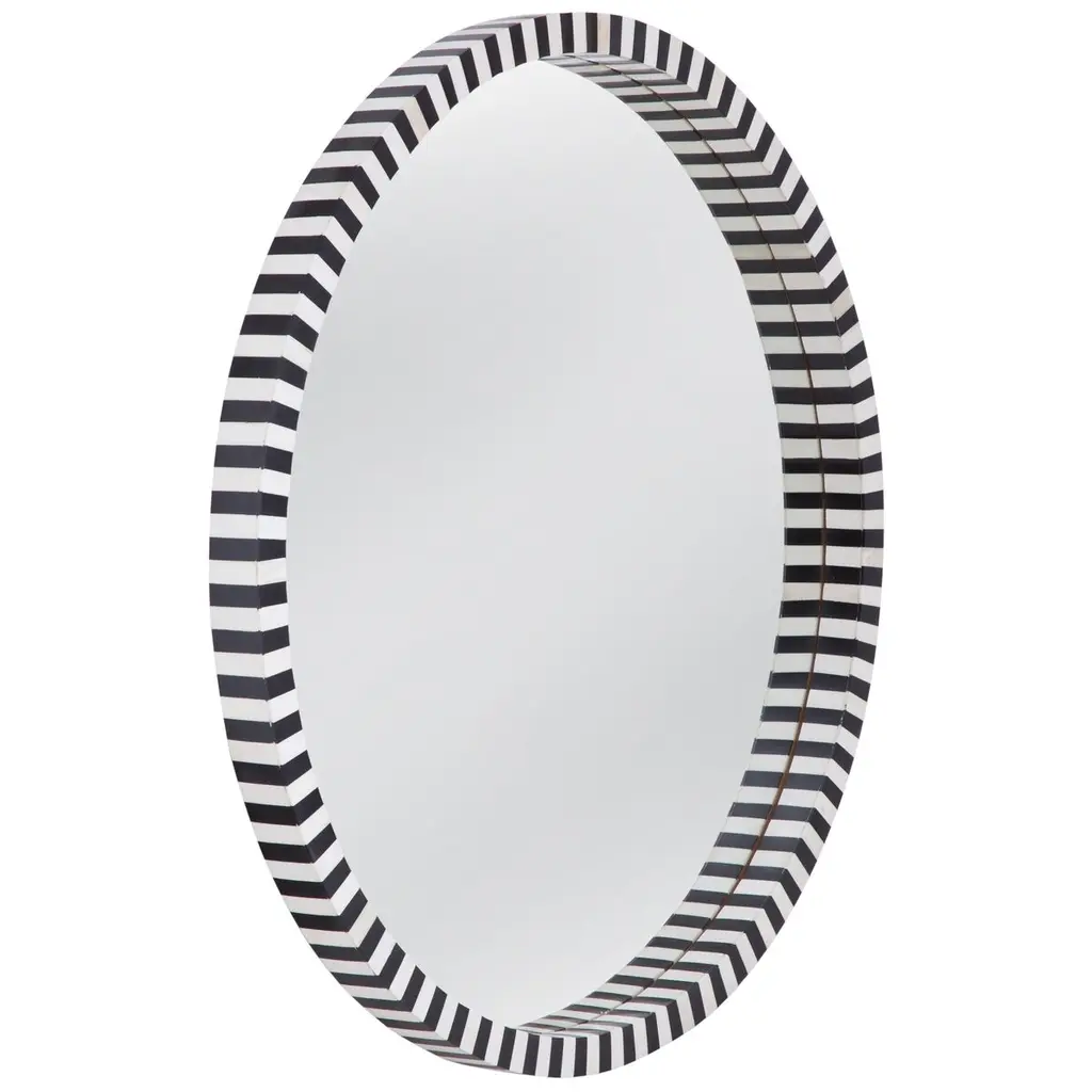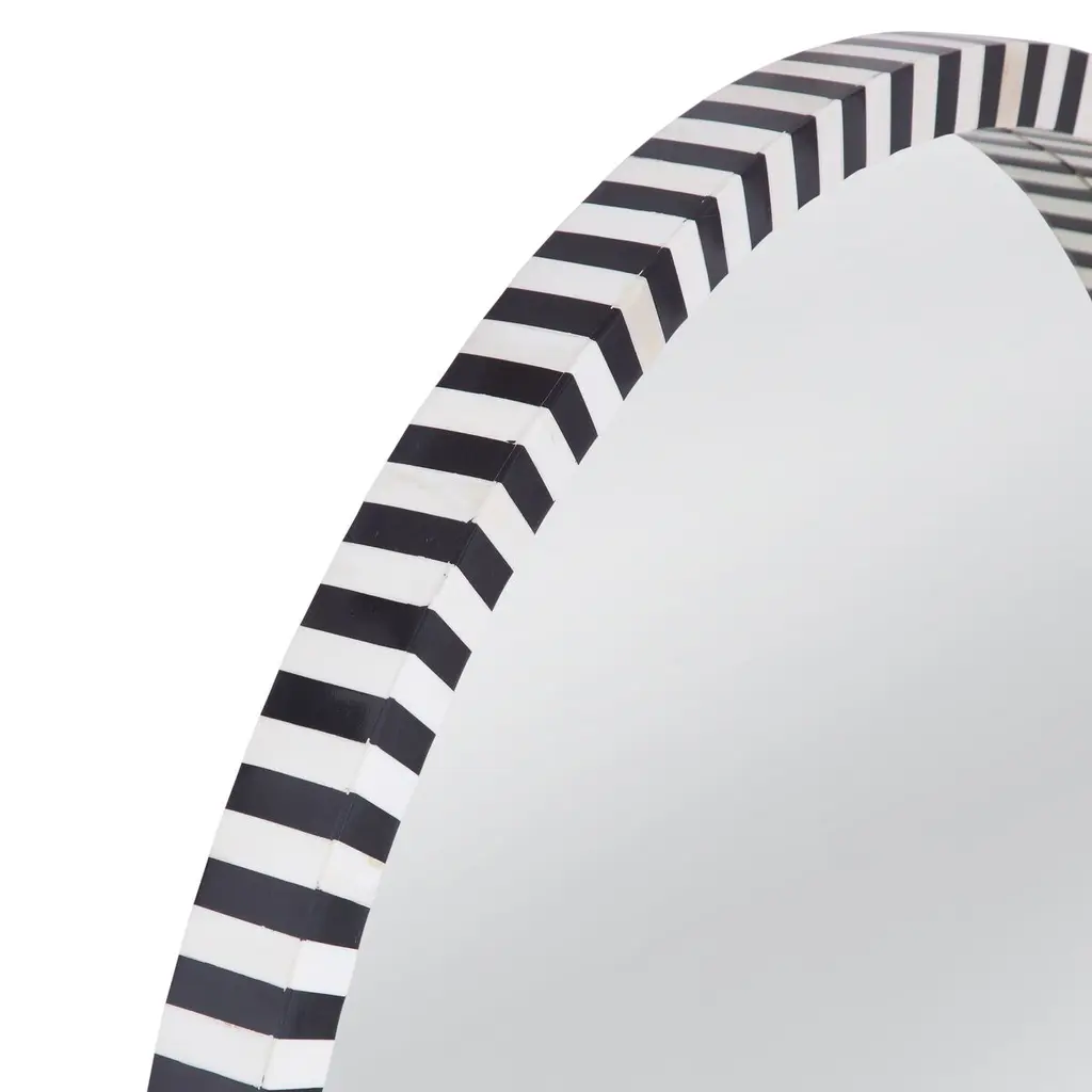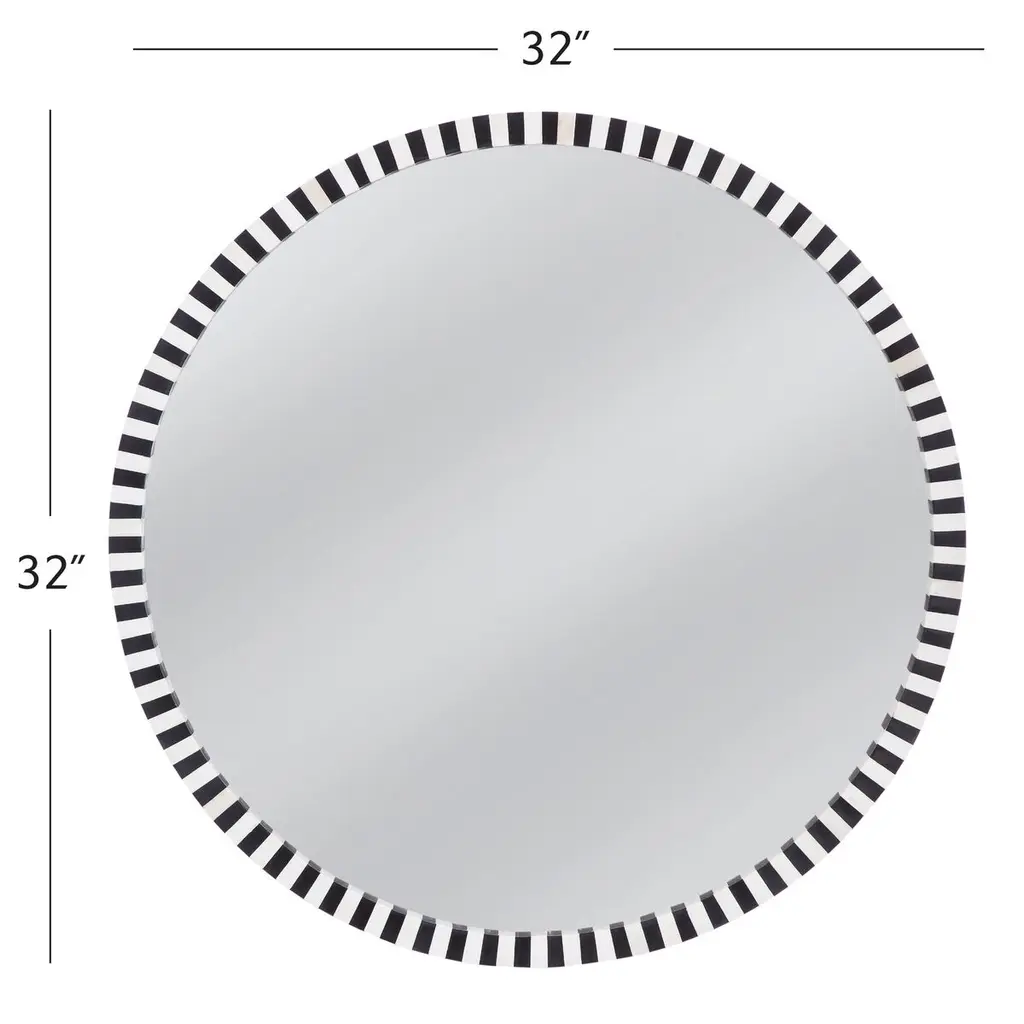 Afton Bone Inlay 32" Round Wall Mirror, Black/cream