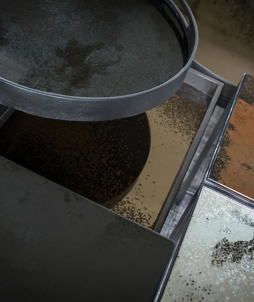 A subdued color palette meets captivating motifs inspired by nature and travel. This collection of trays experiments with the balance between rich patterns offset with muted tones, revealing the beauty behind the deceivingly ordinary subjects from which inspiration is drawn. In doing so, this collection captures the essence of timelessness.