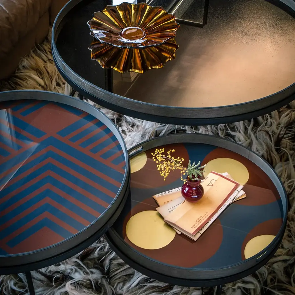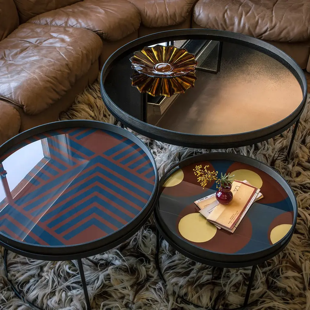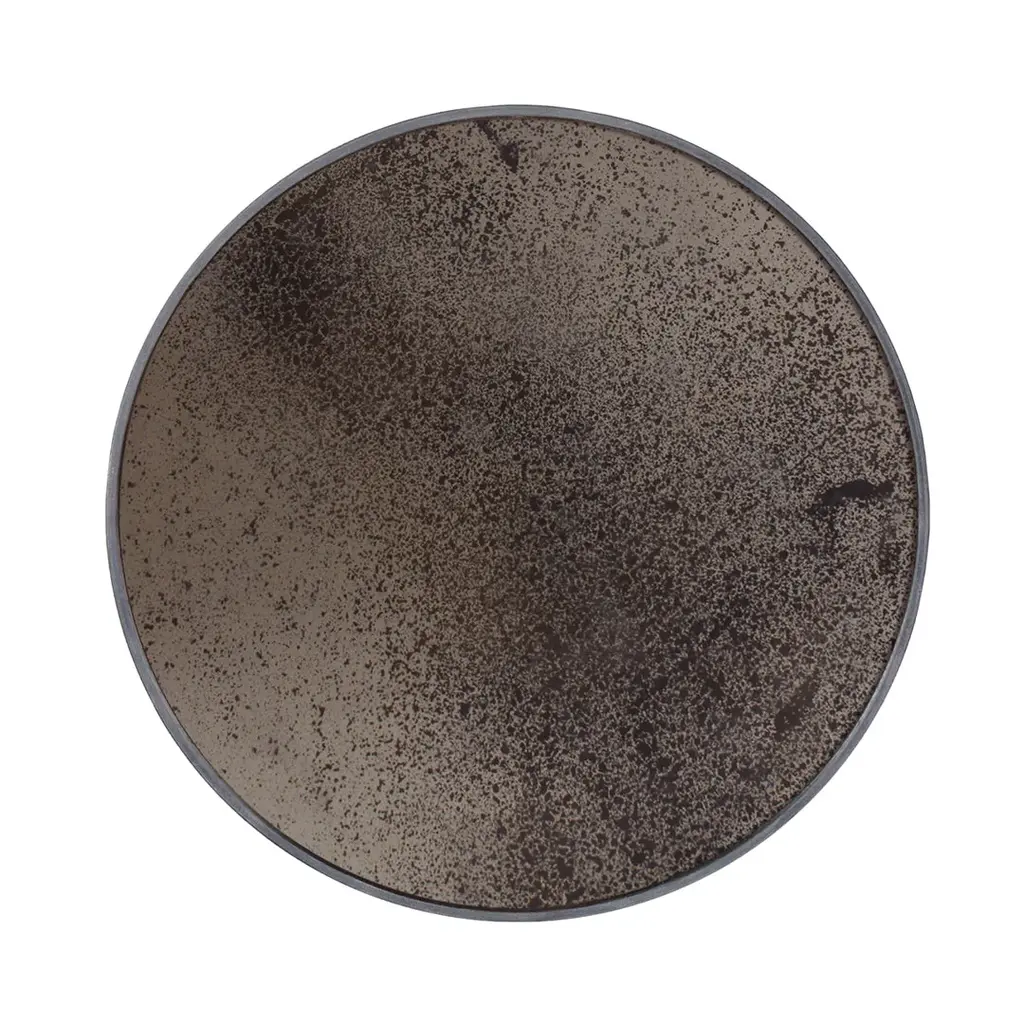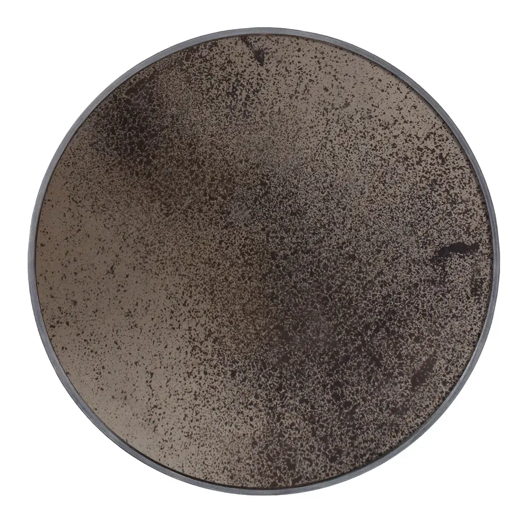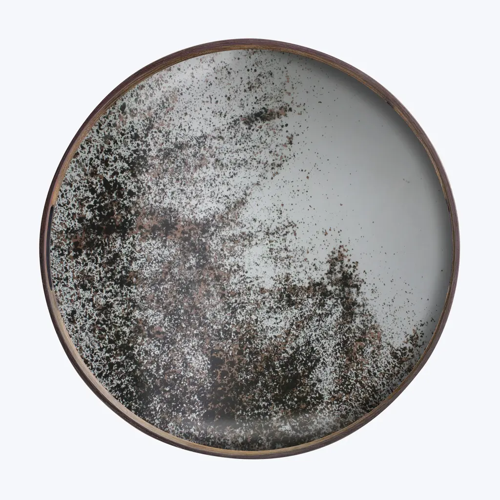 This heavily aged round mirror finds itself in the middle ground between functionality and art. Adorning the living room as wall art or serving a practical purpose in a bathroom or dressing, the unique piece gives the functional object an artful twist.