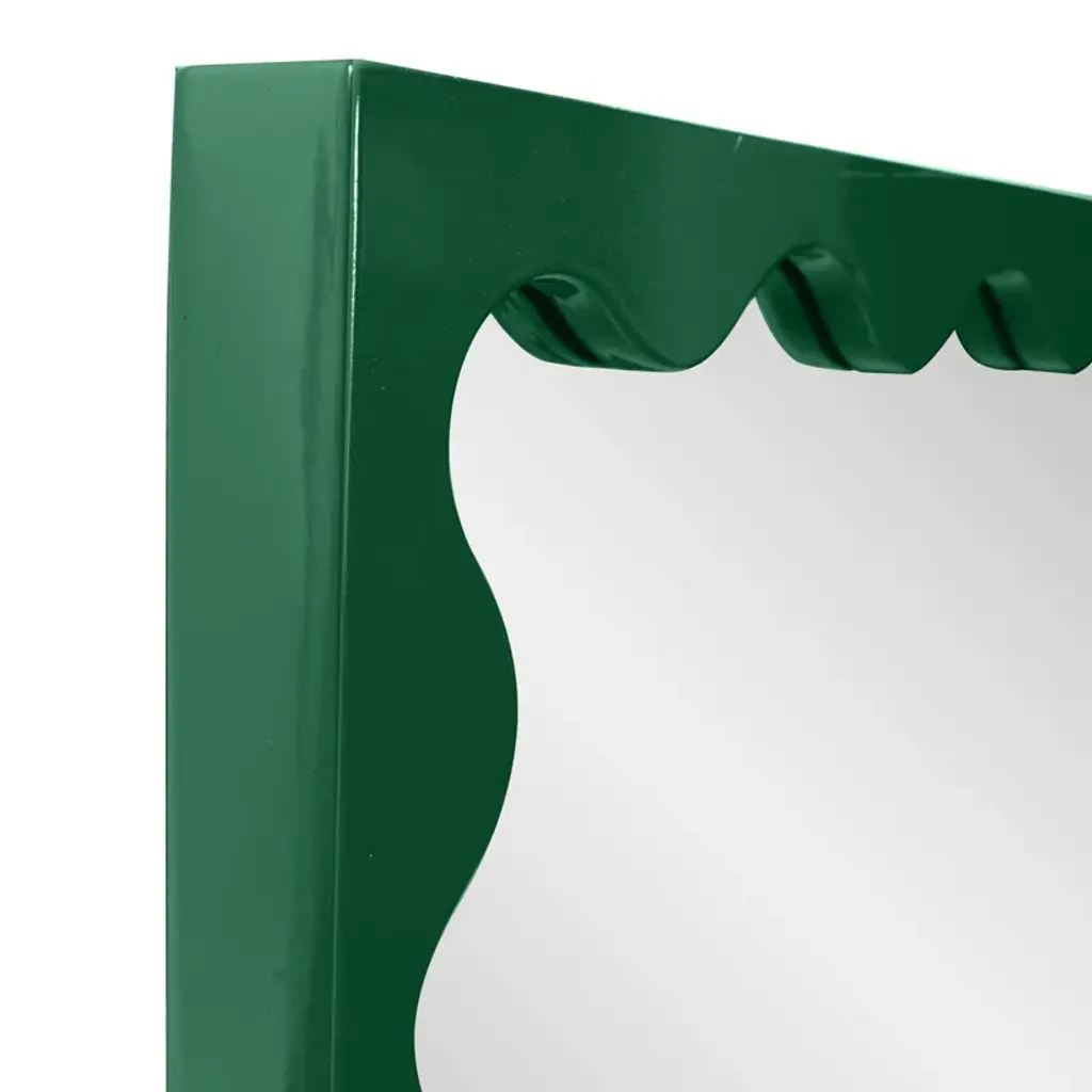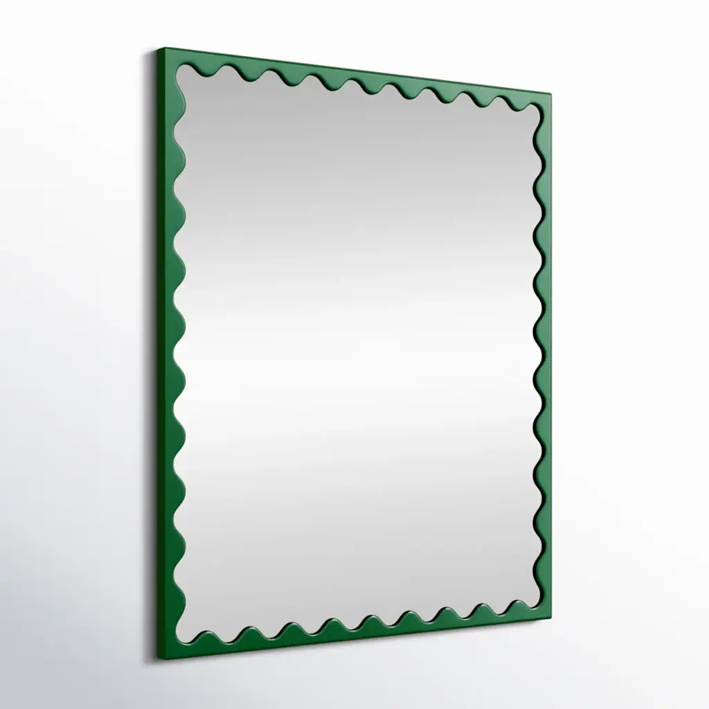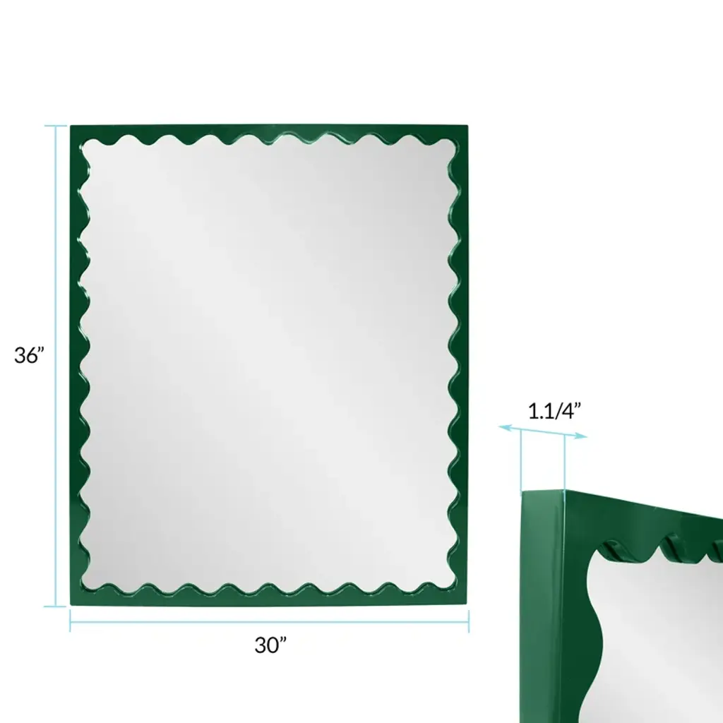 Reflect your style. Available in a range of vivid hues, this playful wall mirror mixes a burst of fresh color into your space. An on-trend scalloped frame creates a sense of movement + lifts off the mirror’s surface, adding depth and dimension to the design. This mirror hangs either horizontally or vertically with included hardware.