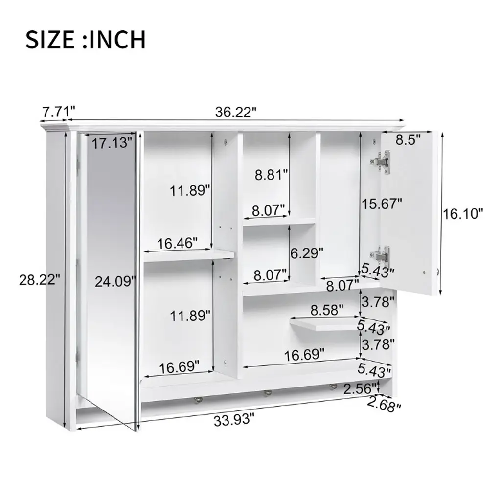 Akoasm 36 Inch Wall Bathroom Storage Medicine Cabinet With Mirror Door & Adjustabl Shelfes-white