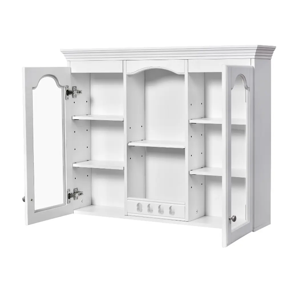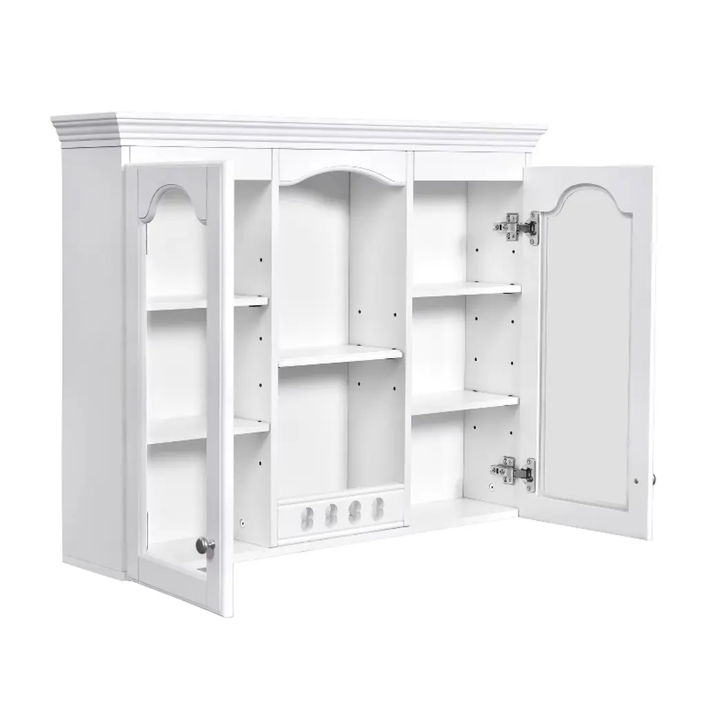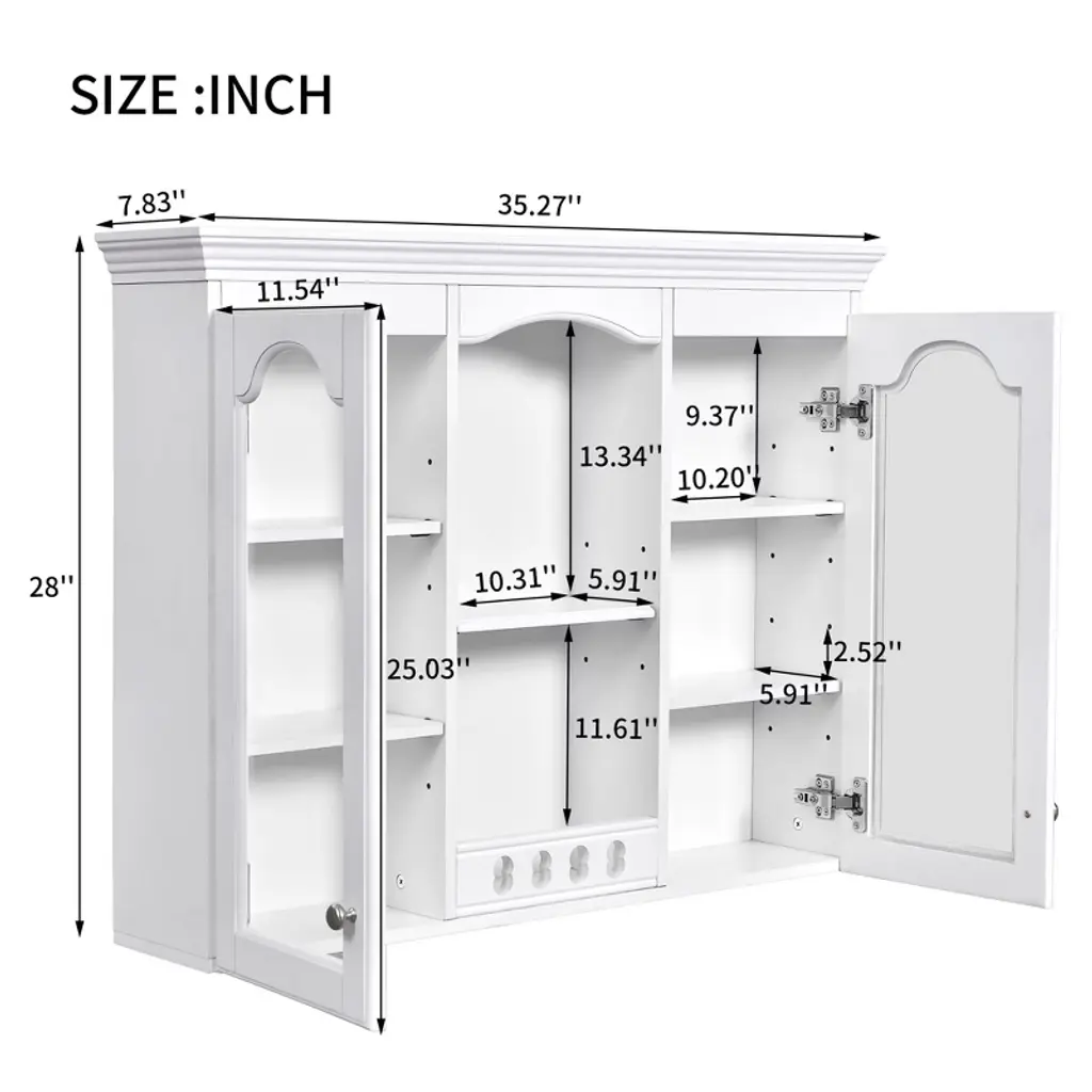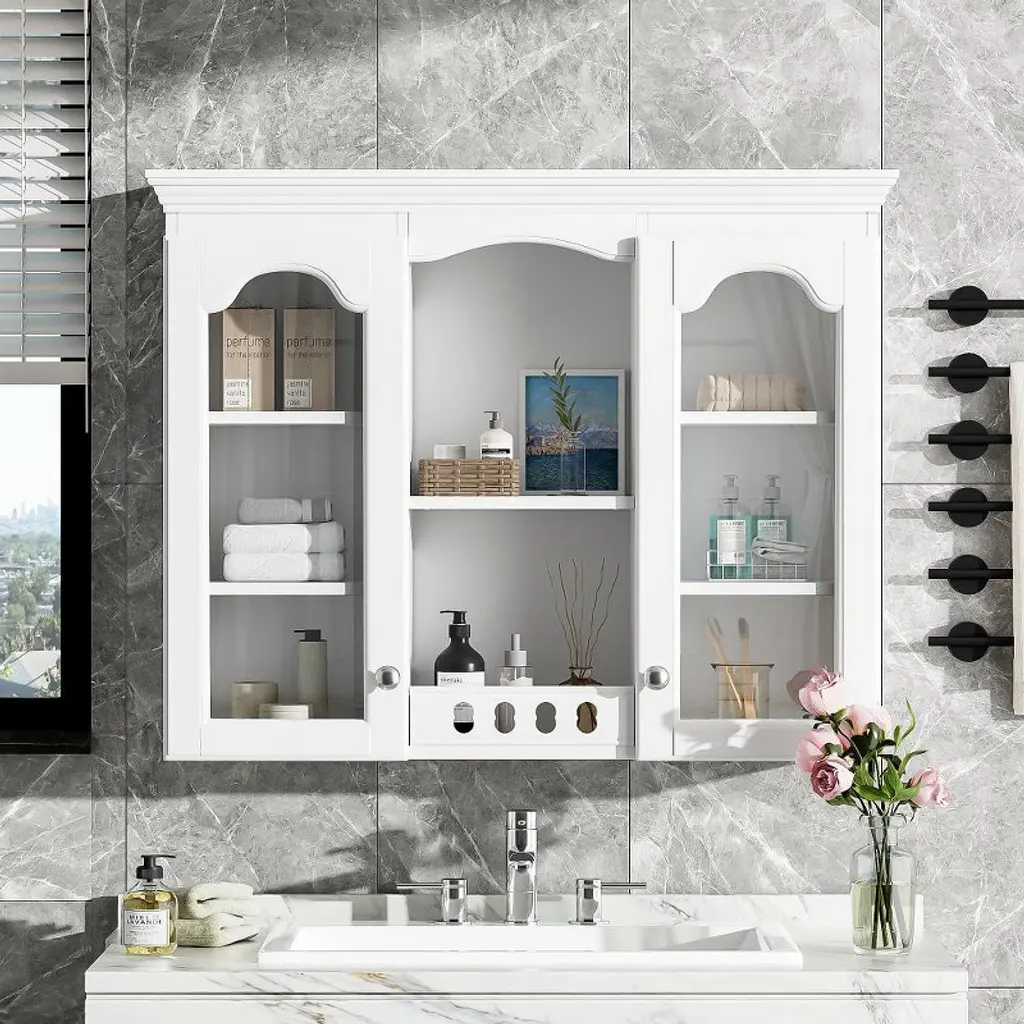 Akoasm Wall Bathroom Medicine Storage Cabinet With Mirror And Glass Doors-white