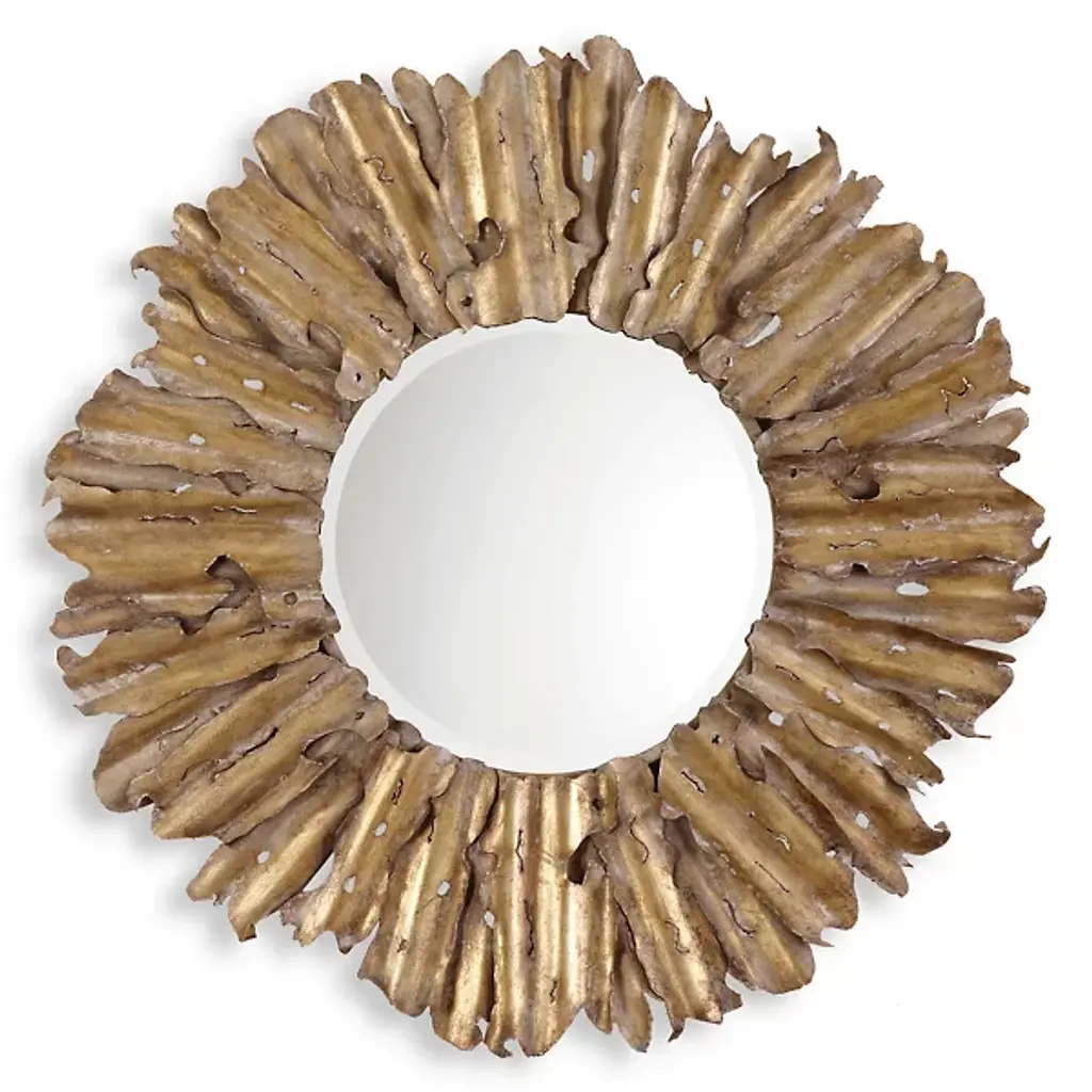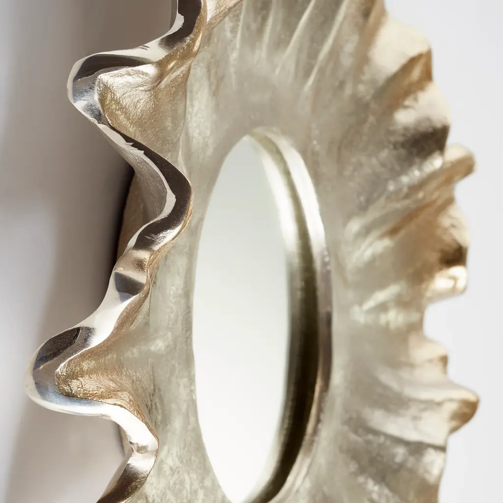 Like a shell from the sea, this nickel mirror explores abstract artistic expression. Glass is made to look like crumpling waves, while the finish has a natural gradient effect. Spruce up any bedroom or living room.