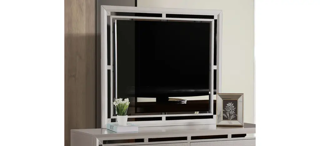 Mirror accents and croc finish are featured on this Alana mirror. Large scale design adds to this piece.