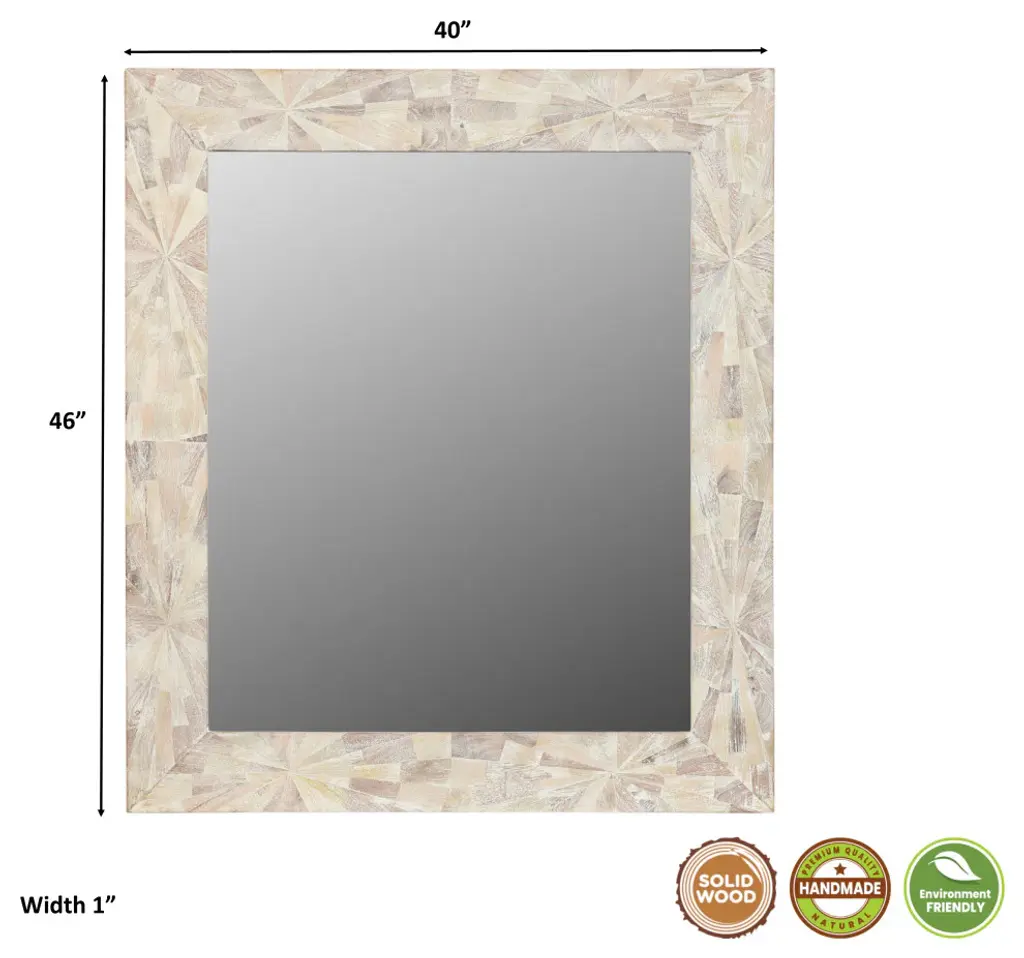 Adding both style and function to your space, this mirror is perfect as a statement piece or a versatile addition. Its precisely cut panels are arranged at an angle to create a beautiful chevron pattern with varied grains and hues. Made from solid mango and acacia wood, this mirror is expertly handcrafted for lasting durability.- Natural wood grain and color variations are inherent characteristics of solid wood furniture and each piece may vary in tone and grain pattern, resulting in a unique, one-of-a-kind appearance.
