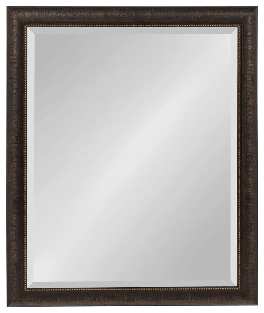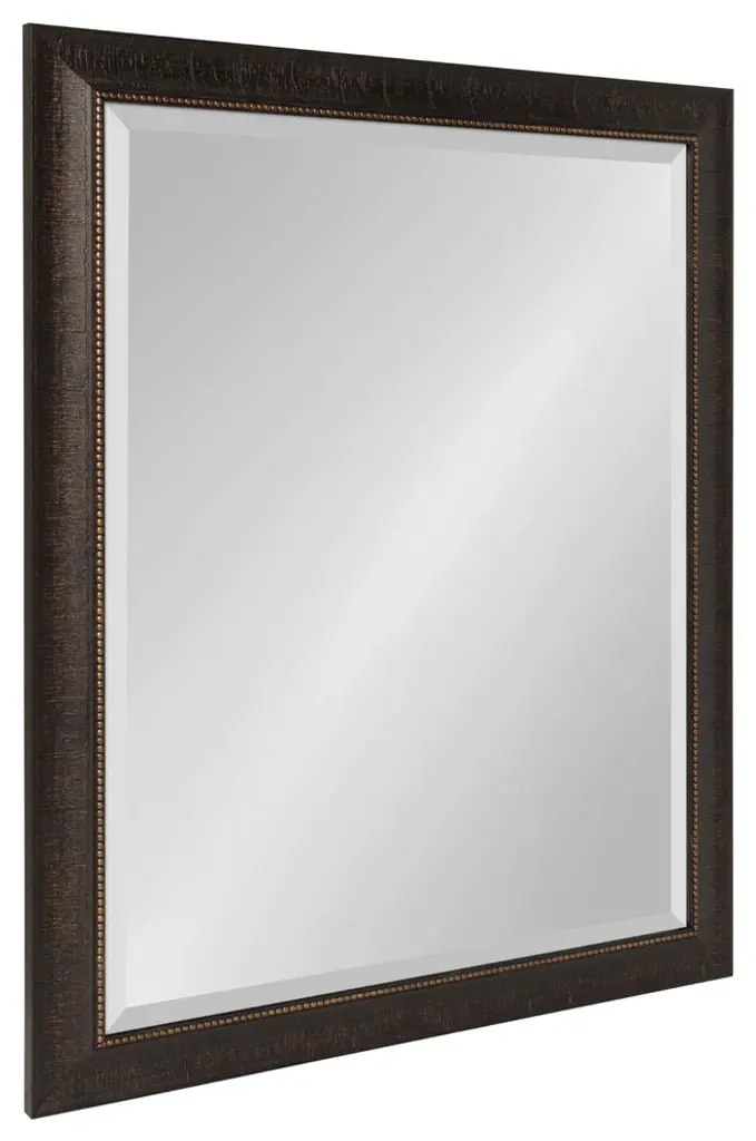 Using a mirror to dress up a part of your home is a simple choice with the Aldridge rectangular wall mirror by Kate and Laurel. It is a beautiful addition to any wall and an essential element in your home decor. An easy way to revamp a space, the large 26 x 32-inch rectangle frame has the perfect dimensions to add a stylish statement to a hallway, bedroom or living room. You could even place two on adjacent walls for opening up space in any smaller room. The substantial size makes it a natural selection for your bathroom either as a tasteful piece of wall art or a practical vanity mirror - use two for a great look over a double sink. The handsome design and beaded, textured detail of the frame creates a traditional appearance and blends with other styles well, so it is sure to fit perfectly in a kitchen, hallway or dining room too. The frame is made of a sturdy polystyrene material and has a 2-inch wide profile with lovely decorative detail. The beveled mirror surface is a generous 21.5 x 27.5 inches, reflecting lots of light and brightening up any space.