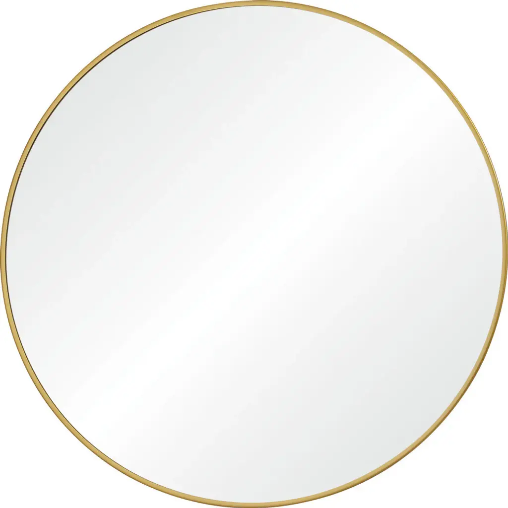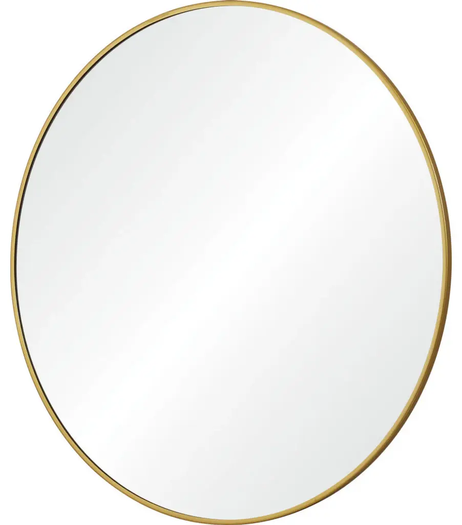 Glamor pours out into the mid-century modern interior space with this mirror. Thanks to a 30-inch circumference, it walks the line between small, versatile design and grand, instrumental piece. With an iron frame showcasing a powder-coated gold finish, its warm details shine without the need for further decoration.