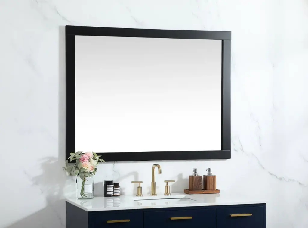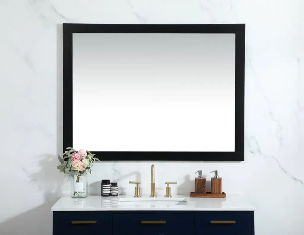 Equally functional and stylish, this rectangular mirror will complement your vanities and walls. Made from mdf, the narrow frame features a simple classic look. Ready to hang out of the box, hanging wall hardware is not provided. Back of the mirror has four brackets that can be hung in either horizontally or vertically.Simple classic non-beveled edge for a brilliant reflectionPolished edge mirrorDesigned for the bathroom and versatile enough to fit in any roomConstructed from MDFcomes with 4 metal keyhole brackets for easy installation on the wallcan be hung in either horizontal or vertical orientation arrives fully assembled and ready to hang