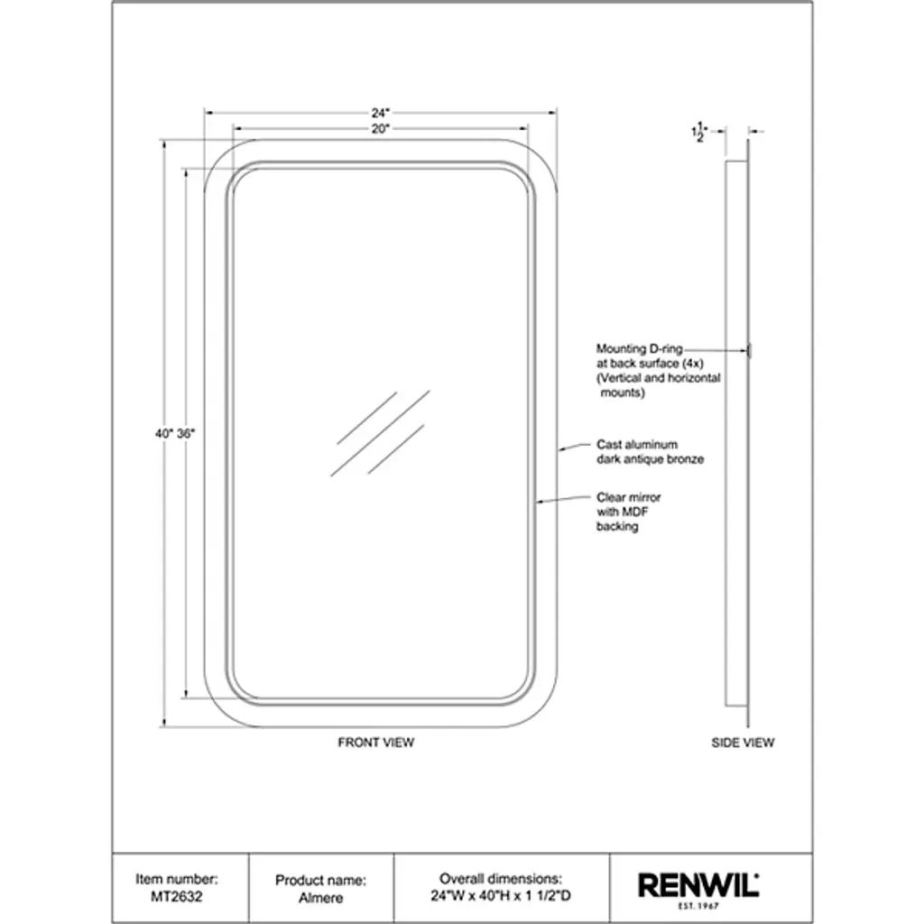 Elevate any room with the luxurious Almere Rectangular Mirror from Renwil. Its clean, rounded shape adds modern charm and visual appeal to your space. Designed with an optimized D-Ring hanging system, installation is quick and easy. This mirror combines functionality and style, perfect for vertical display, making it an essential piece for any interior design enthusiast.