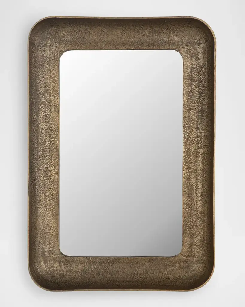 Mirror finished with lustrous plated antique brass Handcrafted of aluminum and mirror with wood composite backing Overall, approx. 30"W x 5"D x 43"T Hanging hardware: D-ring Includes hanging hardware Wipe clean Weight, 40.0lbs Imported Boxed weight, approximately 52.0lbs Proposition 65 warning for California residents Shipping Direct from Vendor, usually ships within 120 business days. Backed by a limited manufacturer’s warranty. ( Click here for warranty information ) undefined