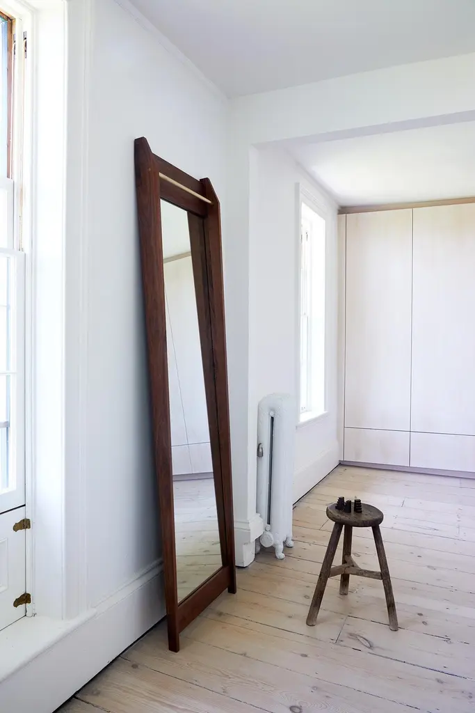 Am1 is a handmade, elegant full length mirror that leans effortlessly against the wall, with the added detail of an upper bronze bar, to hang whatever you please.Shown in solid walnut with bronze accentDimensions: 24”W x 84”HAll of our solid hardwood is sustainably sourced from Pennsylvania. All metalwork is handcrafted in our Newburgh, NY workshop.