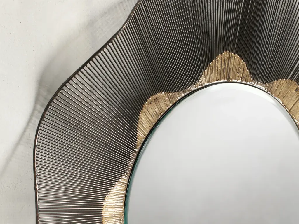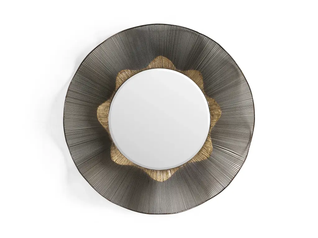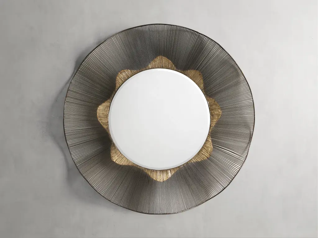 Inspired by the rising sun, our Amalia Mirror Collection features metallic accents on handmade wire silhouettes that create dimension with a subtle wavy edge and beveled glass.