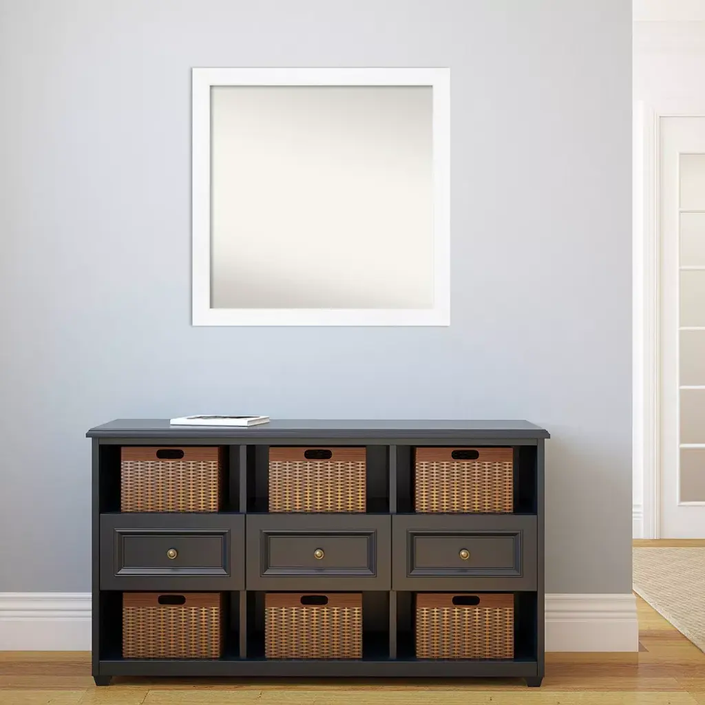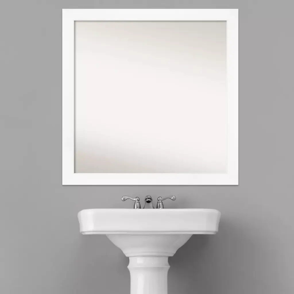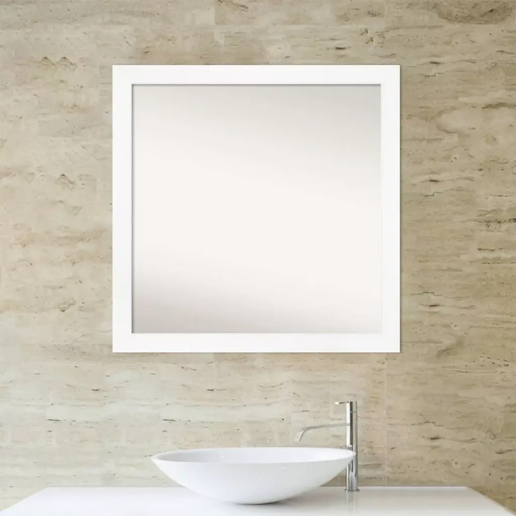 Amanti Art 29"x29" Non-beveled Cabinet Narrow Bathroom Wall Mirror White : Modern Style, Polystyrene Frame, Wall Mounted