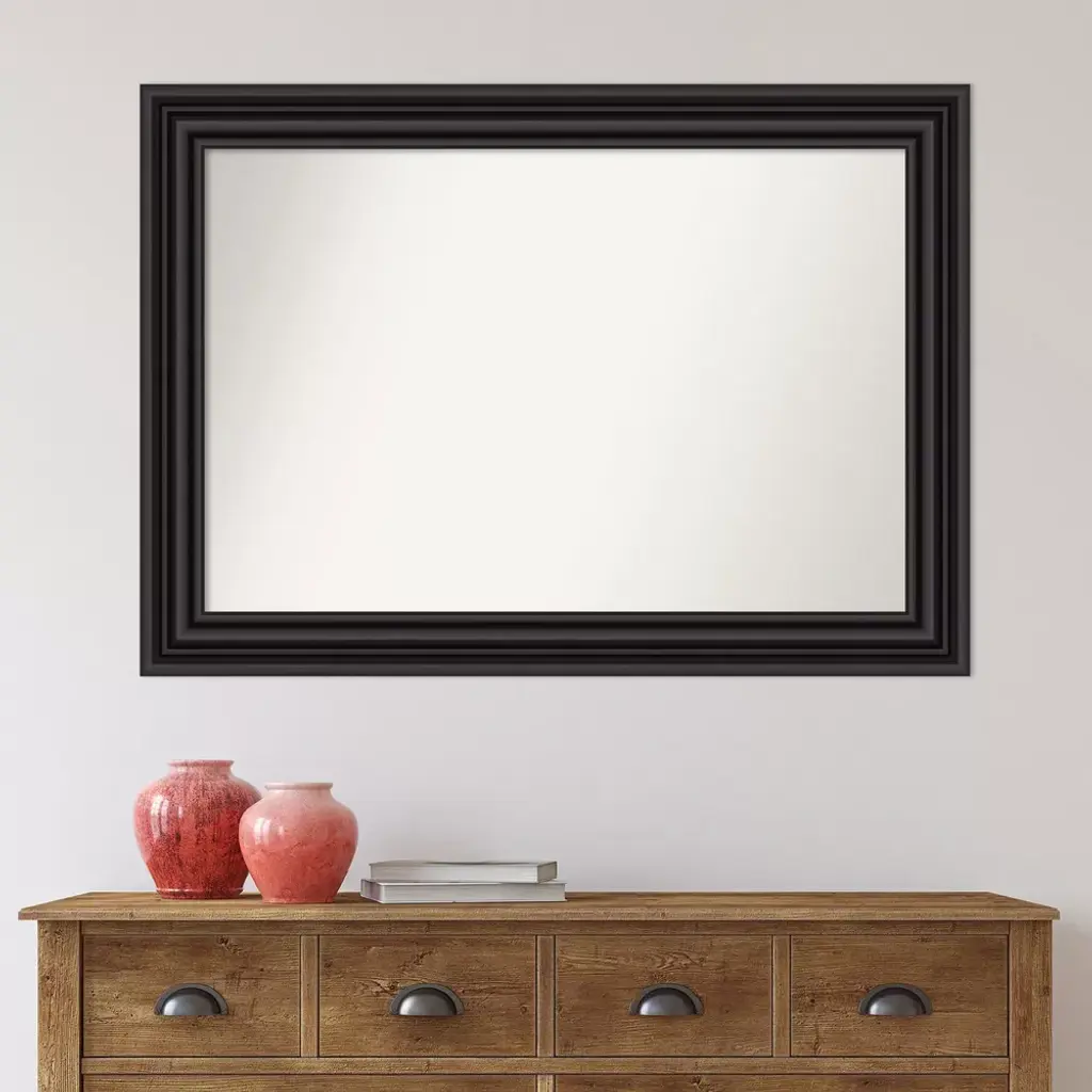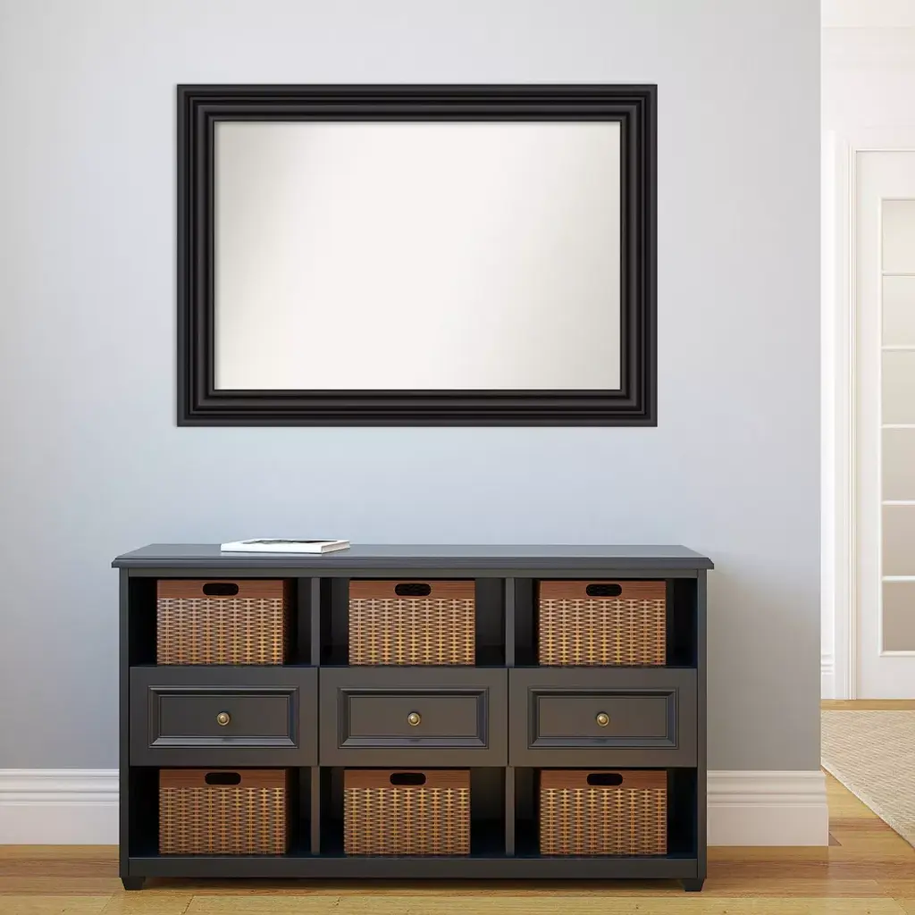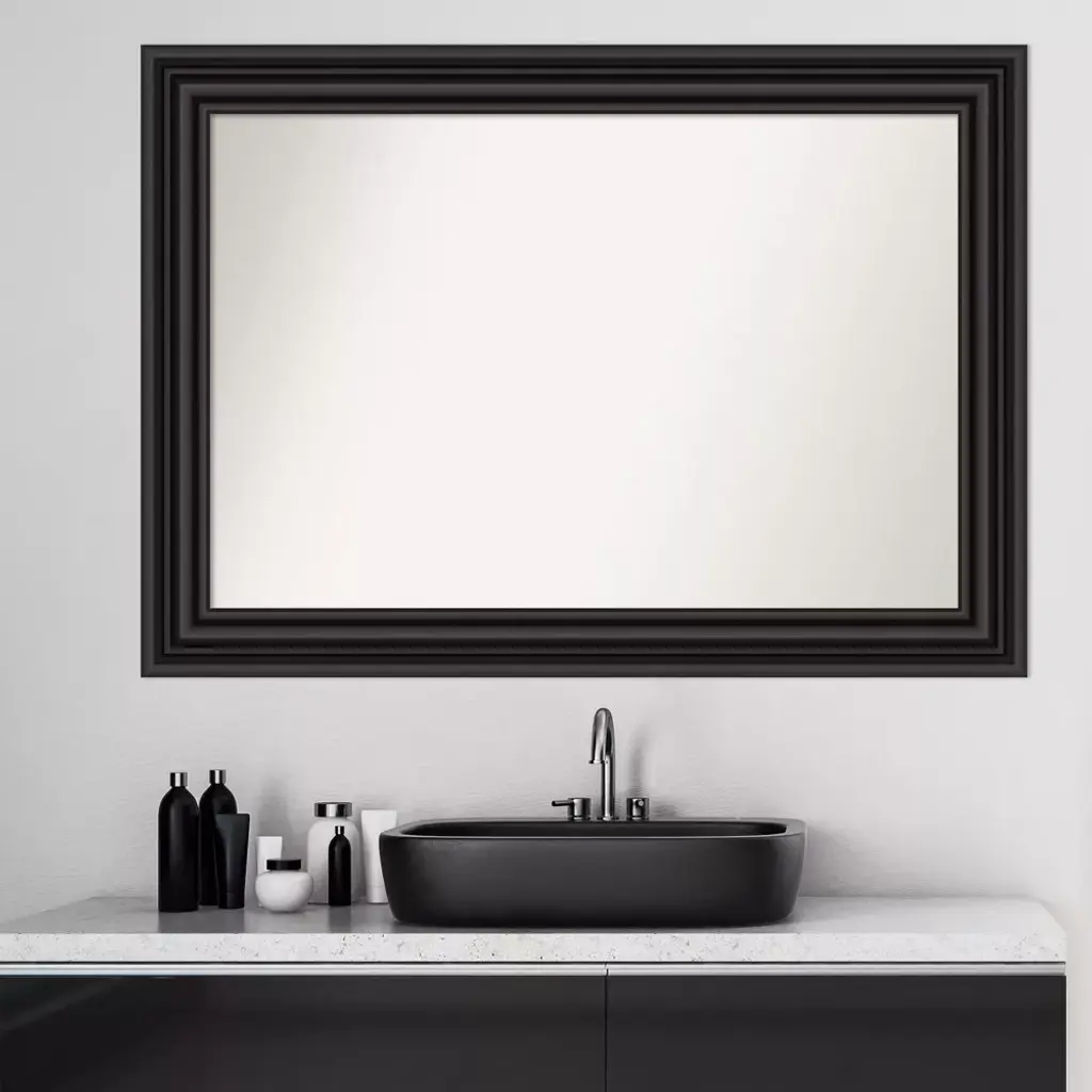 Amanti Art 42"x30" Non-beveled Colonial Bathroom Wall Mirror Black: Modern Style, Polystyrene Frame, Wall Mounted