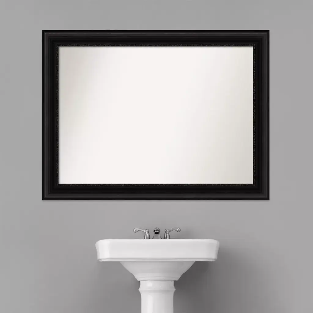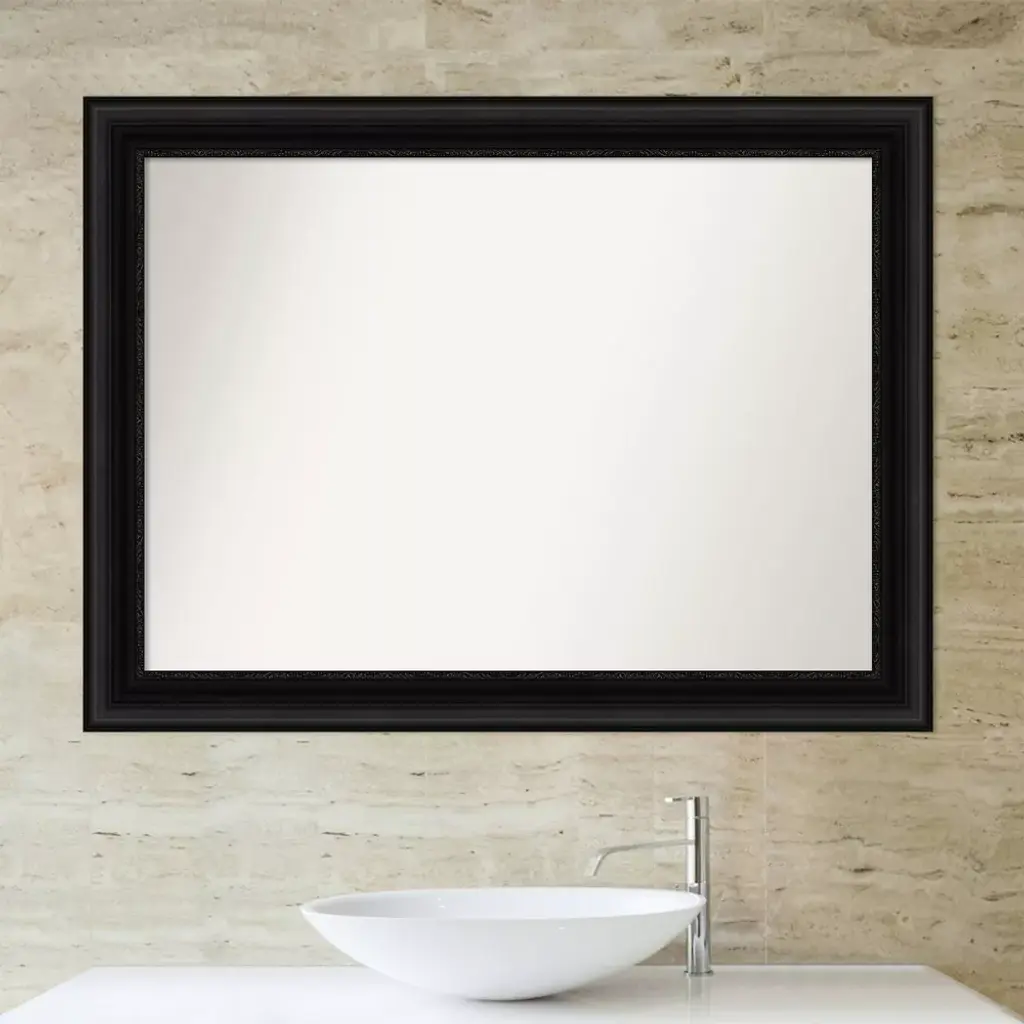 Give your bathroom the finishing touch with this Non-Beveled Wall Mirror framed with the Parlor Black frame. Individually made using traditional custom framing techniques, it has the quality you would expect from your local frame shop. It holds its value with premium finishing that can be appreciated up close. Because of our attention to detail and focus on artistry, architects, interior designers, and homeowners alike choose this mirror to create beautiful living spaces.