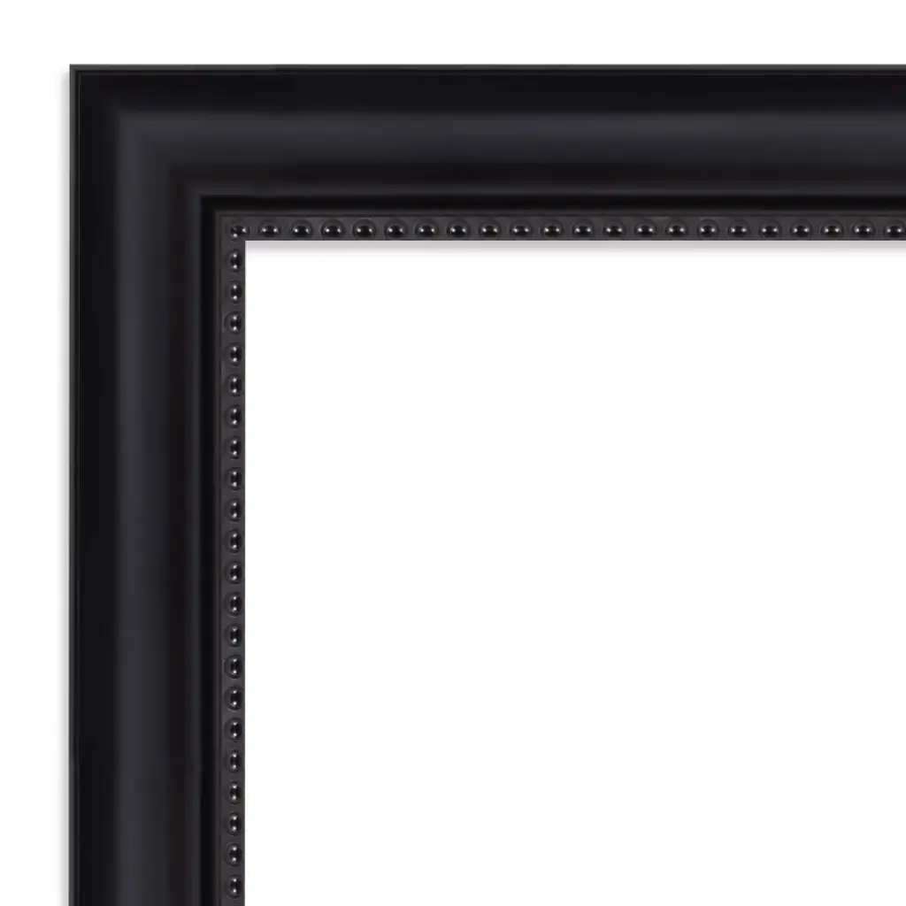 Give your bathroom the finishing touch with this Petite Bevel bathroom mirror. The Astor Black frame is a satin black frame with large satin beading on the inner edge and a matte finish around the beading. The frame is 2.75 in. wide and stands 1 in. off the wall. It's Individually made using traditional custom framing techniques, it has the quality you expect from your local frame shop. It holds its value with premium finishing that can be appreciated up close. Because of our attention to detail and focus on artistry, architects, interior designers, and homeowners alike choose this mirror to create beautiful living spaces.