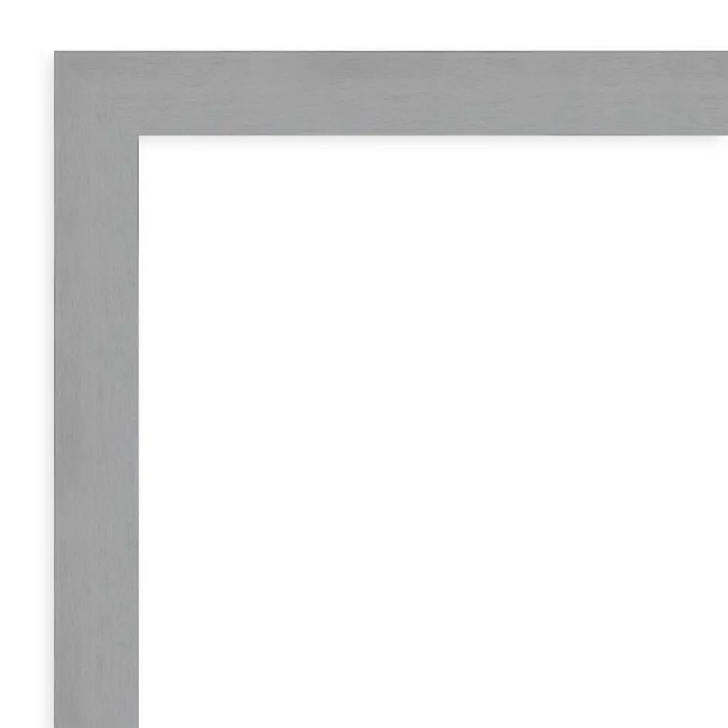 Give your bathroom the finishing touch with this non-beveled bathroom mirror. The Brushed Nickel frame is a contemporary, brushed, light silver frame with a flat profile, metallic sheen, and minimalist shape. The frame is 2 in. wide and stands 0.75 in. off the wall. It's Individually made using traditional custom framing techniques, it has the quality you expect from your local frame shop. It holds its value with premium finishing that can be appreciated up close. Because of our attention to detail and focus on artistry, architects, interior designers, and homeowners alike choose this mirror to create beautiful living spaces.