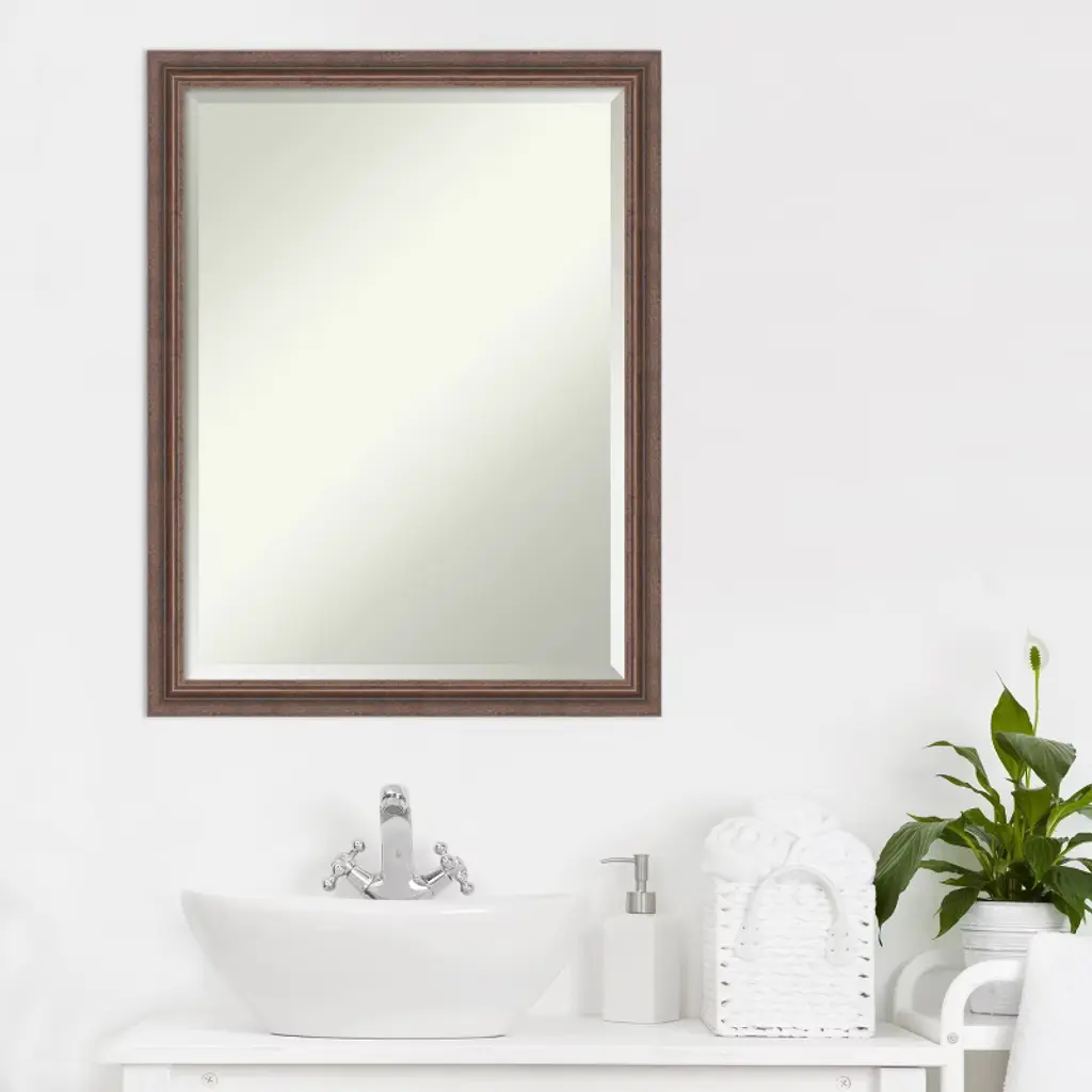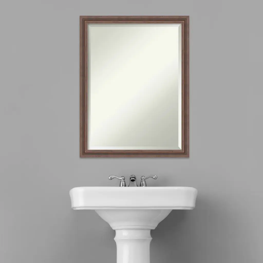 Amanti Art Distressed Rustic Brown Beveled Wood Bathroom Wall Mirror 26.5 X 20.5 In.