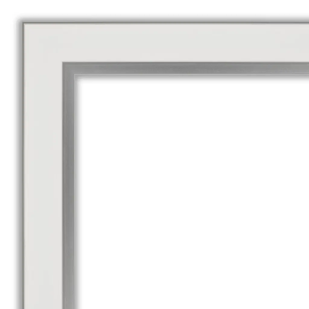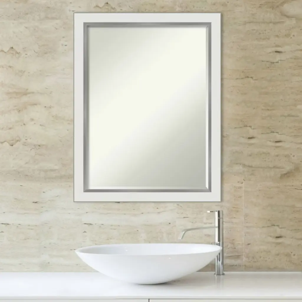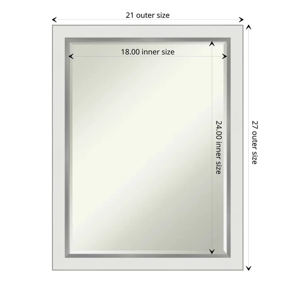 Amanti Art Eva White Silver Narrow Petite Bevel Bathroom Wall Mirror 27 X 21 In.