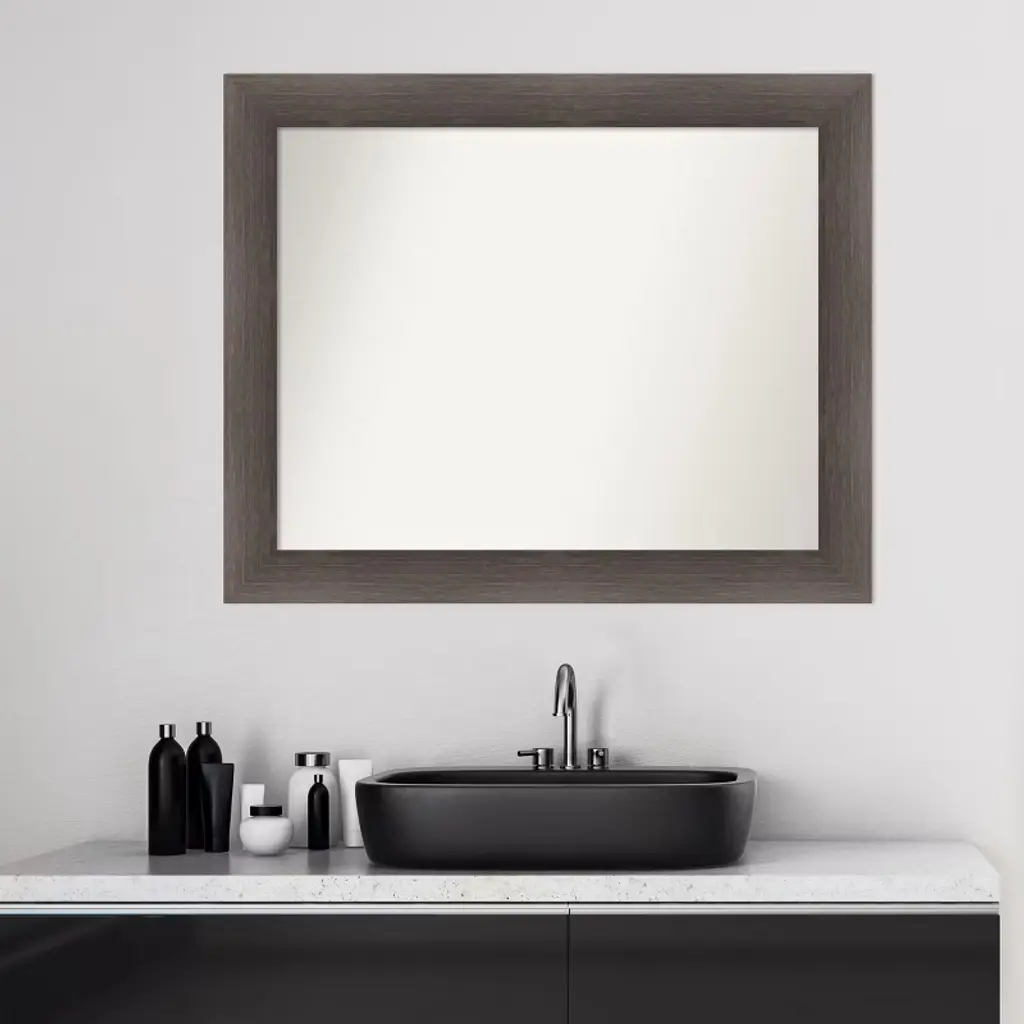 Amanti Art Hardwood Chocolate Non-beveled Wood Bathroom Wall Mirror 26.75 X 32.75 In.