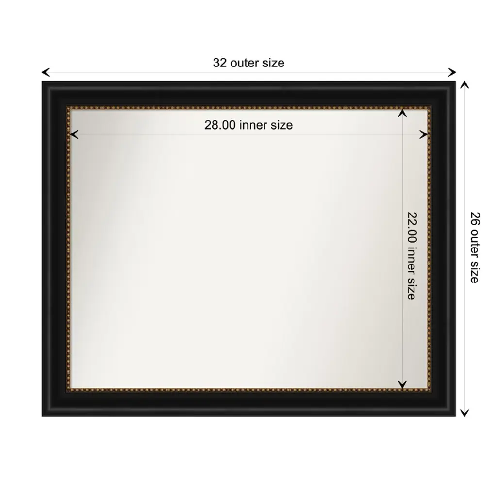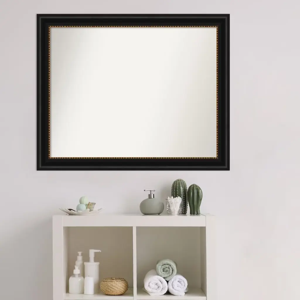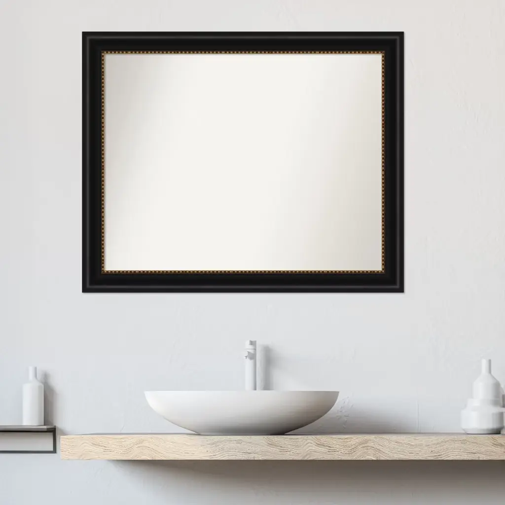 Give your bathroom the finishing touch with this Non-Beveled bathroom mirror. The Manhattan Black frame is a black scooped frame with antique gold beaded inner edge. The frame is 2.25 in. wide and stands 1 in. off the wall. It's Individually made using traditional custom framing techniques, it has the quality you expect from your local frame shop. It holds its value with premium finishing that can be appreciated up close. Because of our attention to detail and focus on artistry, architects, interior designers, and homeowners alike choose this mirror to create beautiful living spaces.