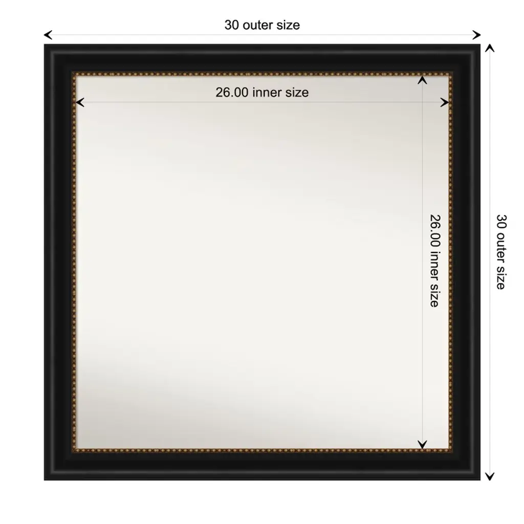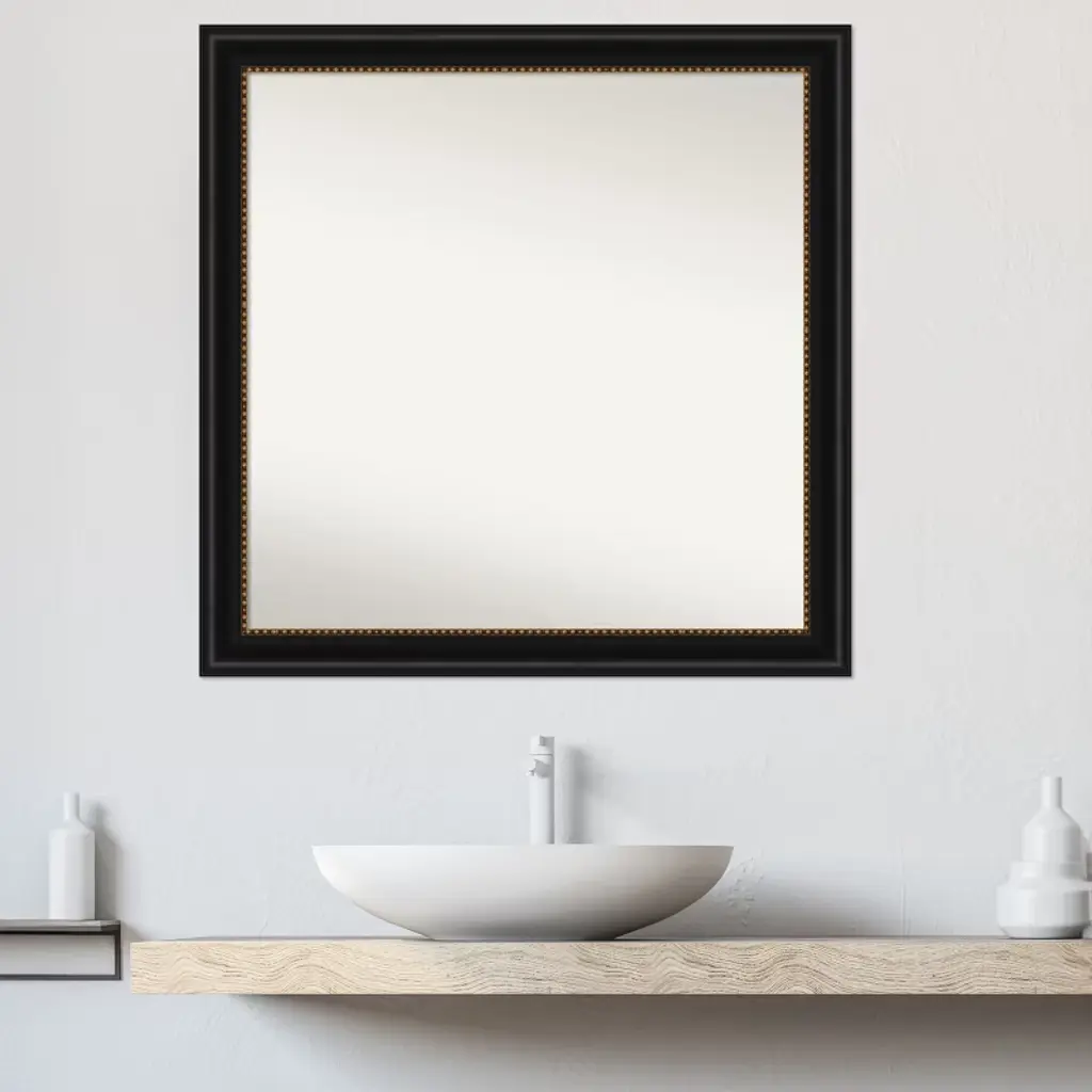 Give your bathroom the finishing touch with this Non-Beveled bathroom mirror. The Manhattan Black frame is a black scooped frame with antique gold beaded inner edge. The frame is 2.25 in. wide and stands 1 in. off the wall. It's Individually made using traditional custom framing techniques, it has the quality you expect from your local frame shop. It holds its value with premium finishing that can be appreciated up close. Because of our attention to detail and focus on artistry, architects, interior designers, and homeowners alike choose this mirror to create beautiful living spaces.