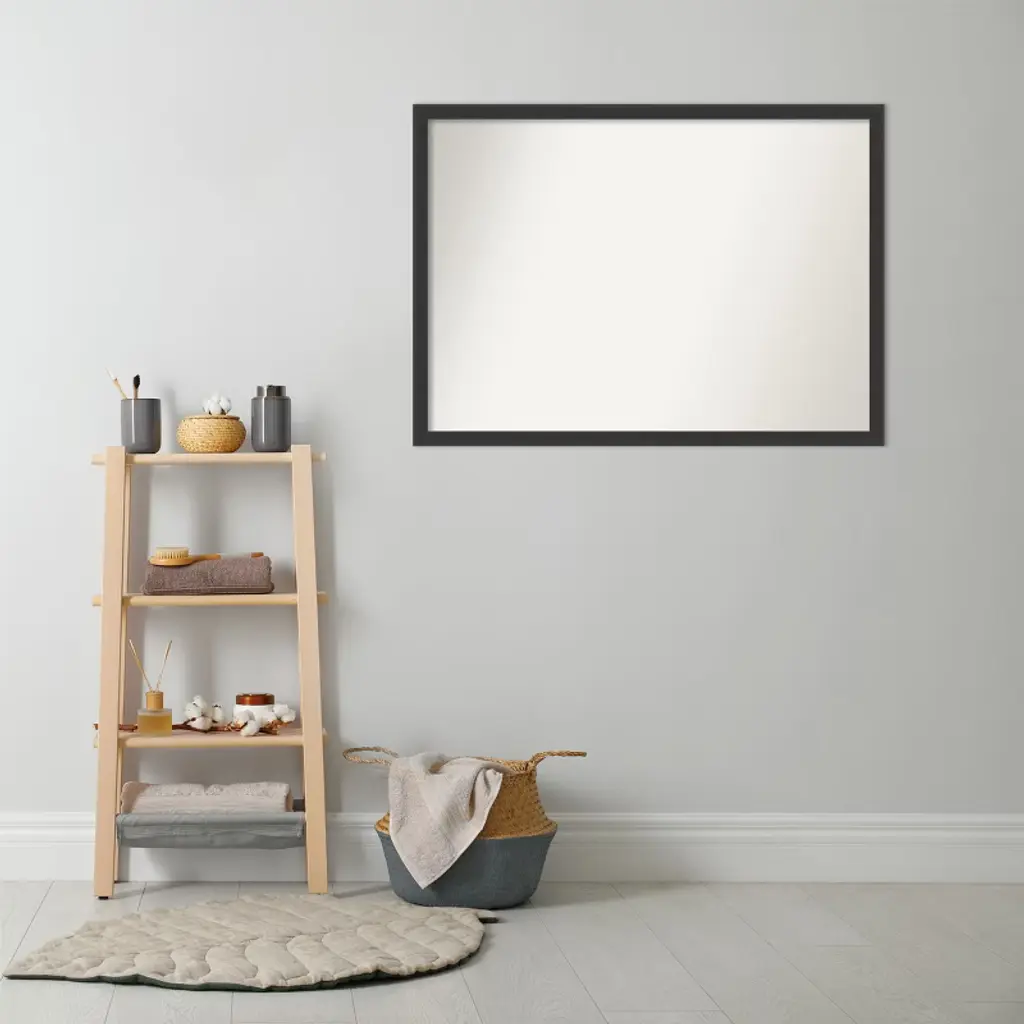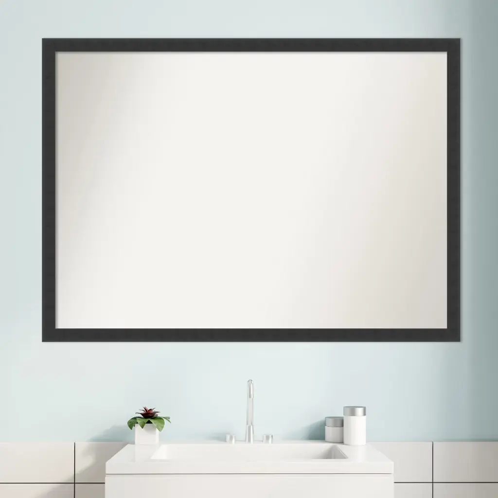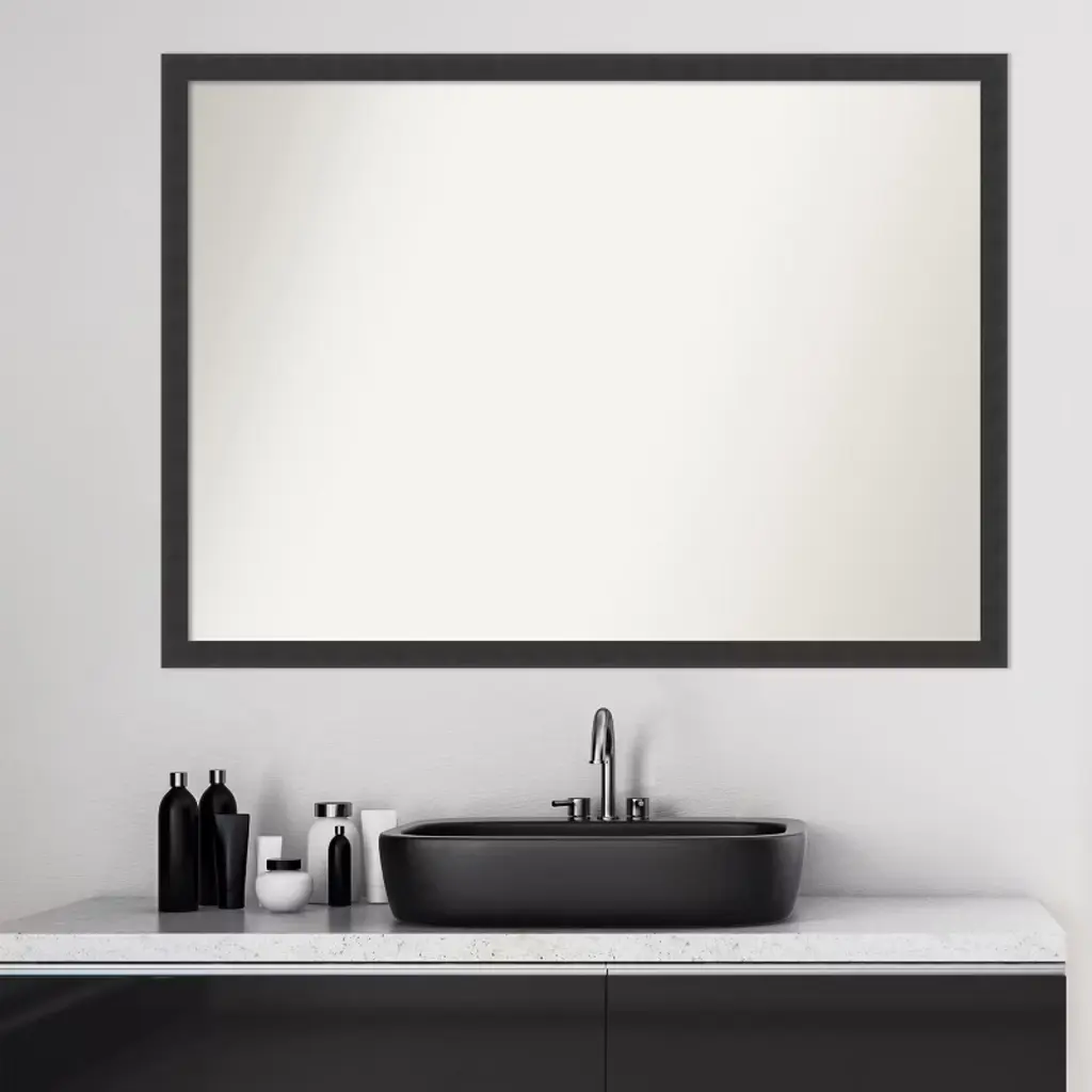 Amanti Art Mezzanotte Black Non-beveled Wood Bathroom Wall Mirror 29 X 40 In.
