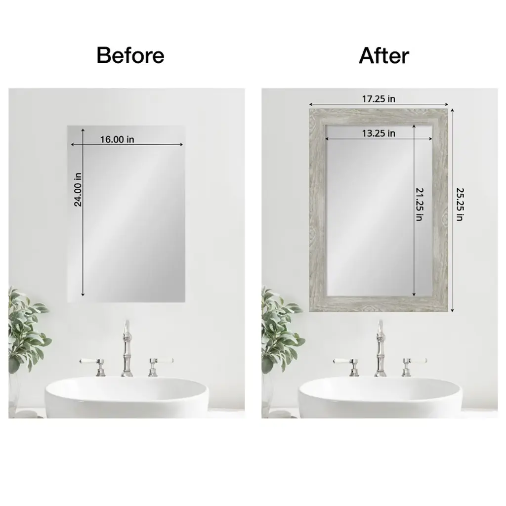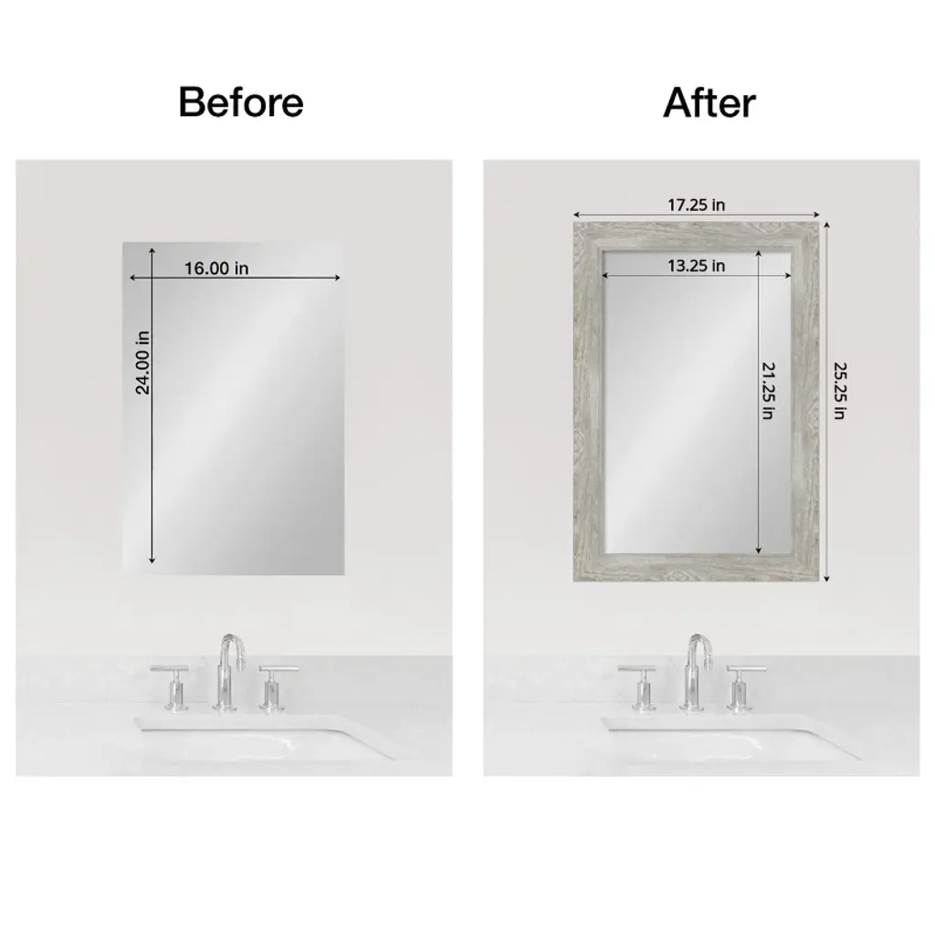 Amanti Art Mirror Makeover Bathroom Mirror Frame Border Kit To Add A Frame To A 16x24 Inch Mirror - Mirror Not Included - Dove Greywash Narrow Trim
