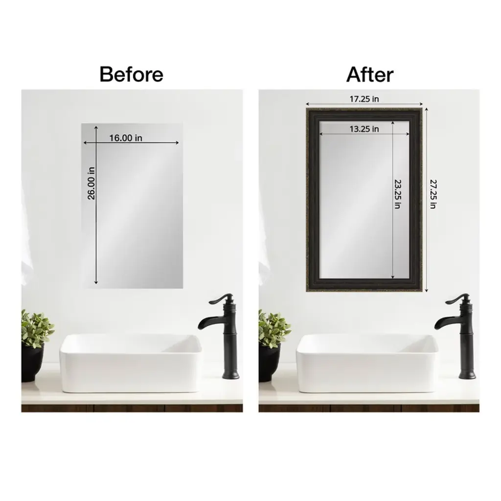 Amanti Art Mirror Makeover Bathroom Mirror Frame Border Kit To Add A Frame To A 16x26 Inch Mirror - Mirror Not Included - Accent Bronze Narrow Trim