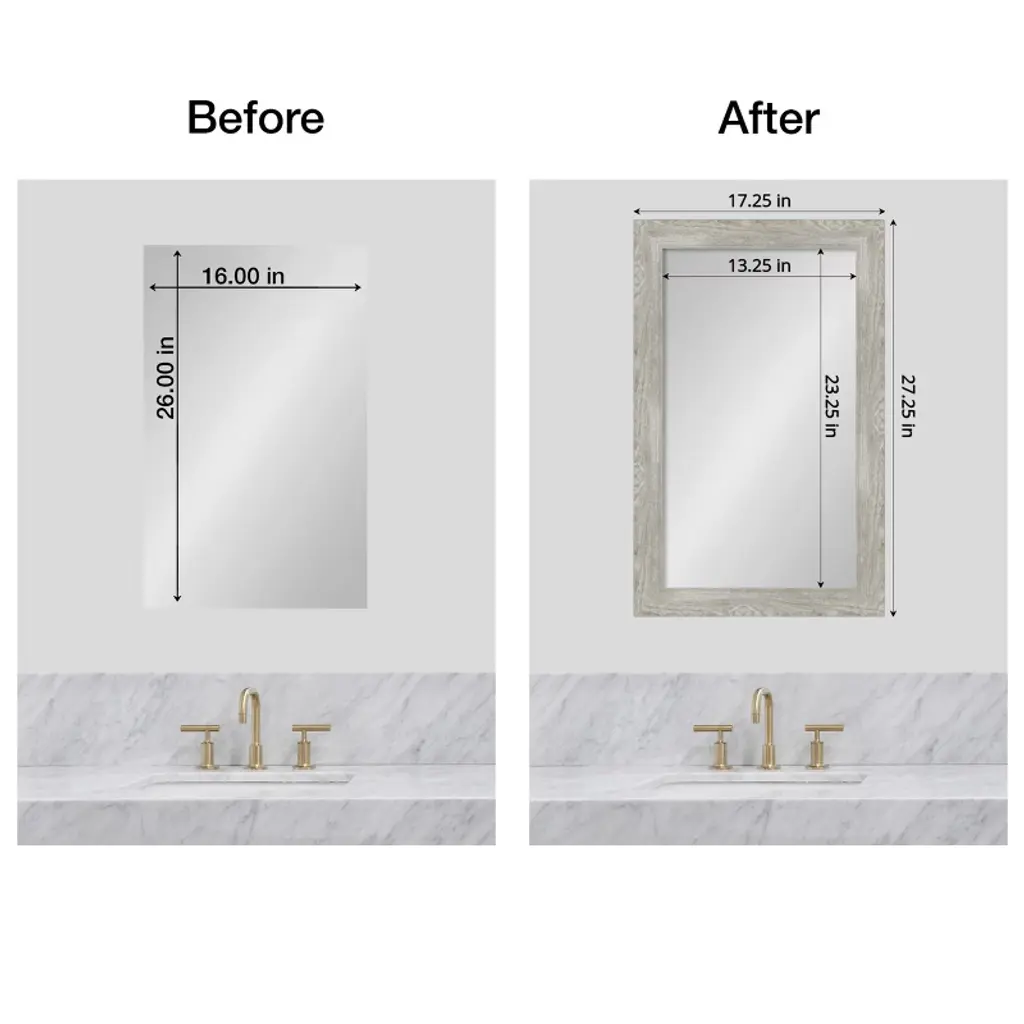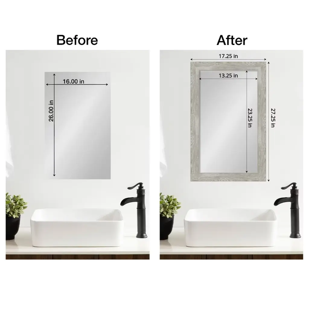 Amanti Art Mirror Makeover Bathroom Mirror Frame Border Kit To Add A Frame To A 16x26 Inch Mirror - Mirror Not Included - Dove Greywash Narrow Trim