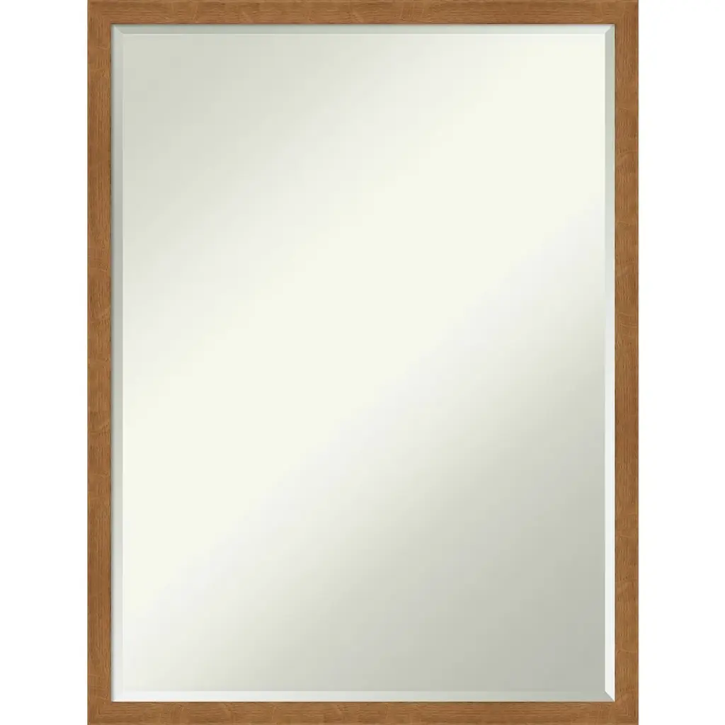 Give your bathroom the finishing touch with this Petite Bevel bathroom mirror. The Rustic Plank Espresso Narrow frame is a rustic, flat frame with espresso finish and woodgrain texturing throughout. The frame is 2 in. wide and stands 0.75 in. off the wall. It's Individually made using traditional custom framing techniques, it has the quality you expect from your local frame shop. It holds its value with premium finishing that can be appreciated up close. Because of our attention to detail and focus on artistry, architects, interior designers, and homeowners alike choose this mirror to create beautiful living spaces.