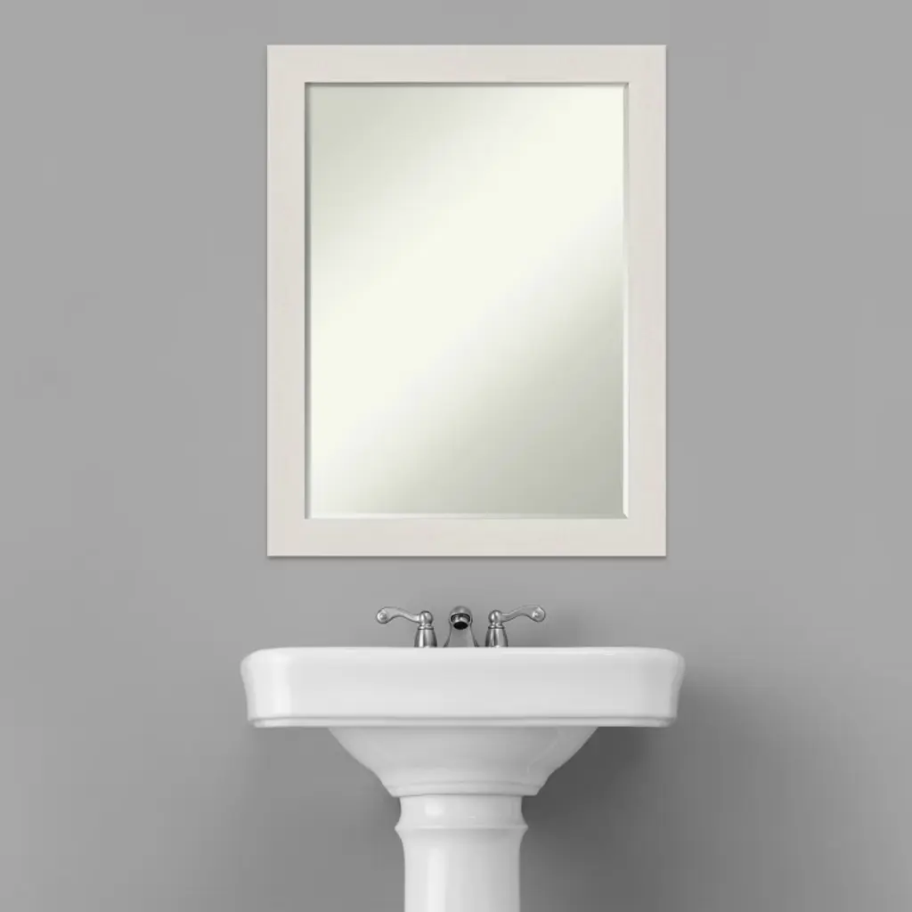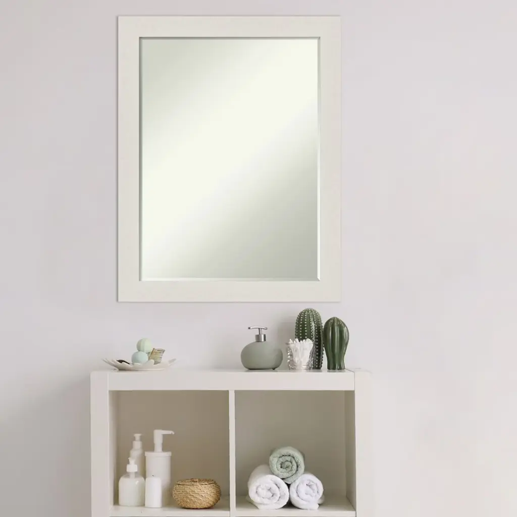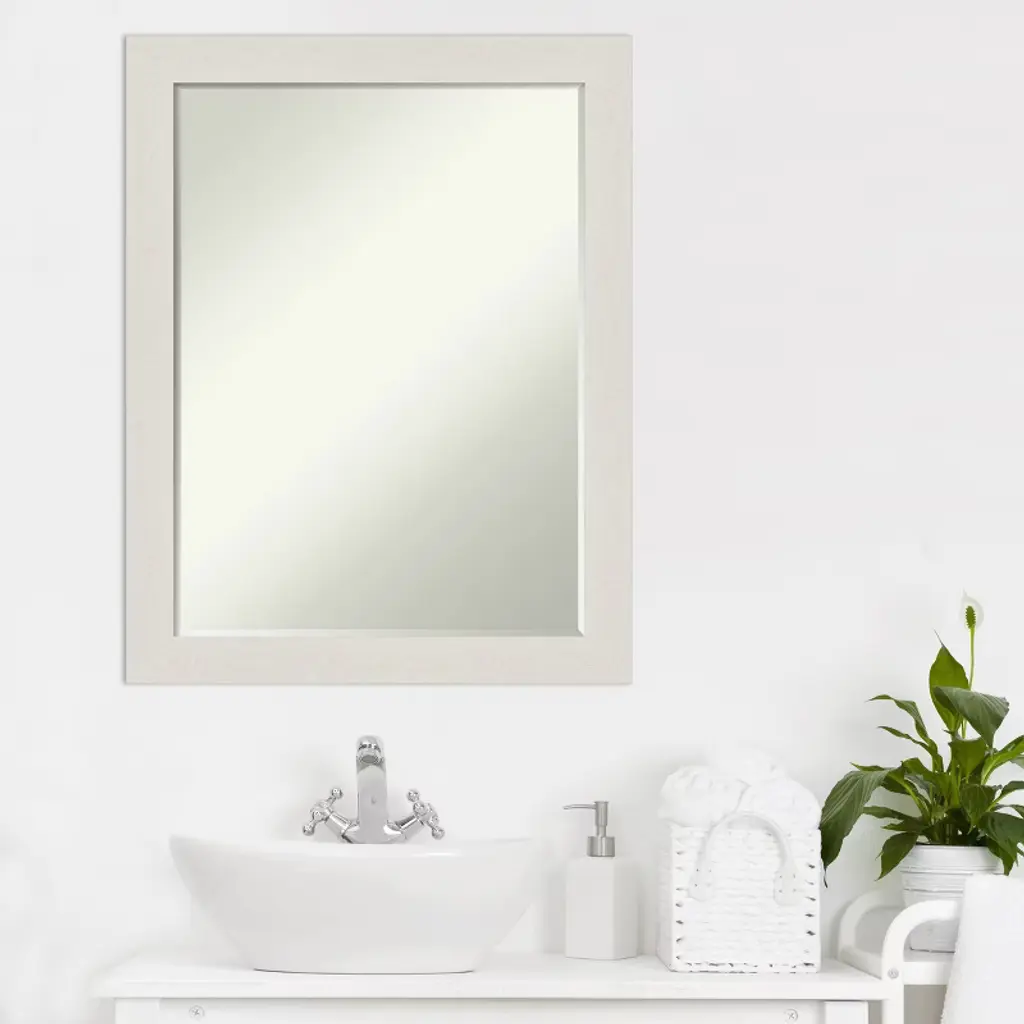 Amanti Art Rustic Plank White Narrow Petite Bevel Bathroom Wall Mirror 27.5 X 21.5 In.